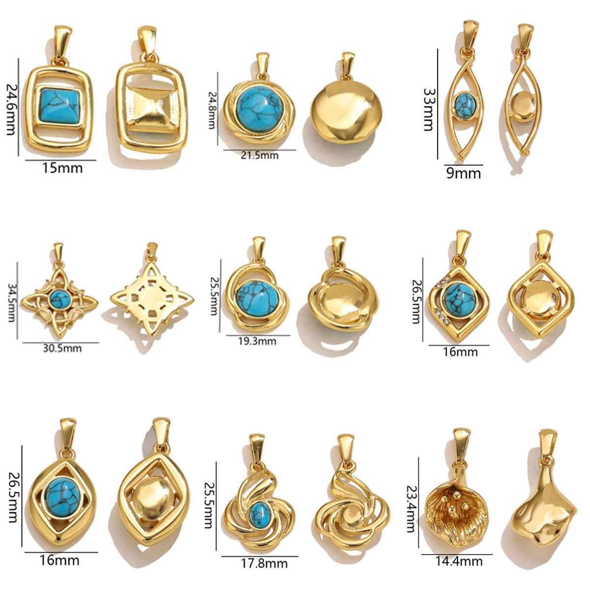 Natural Turquoise Pendants, 304 Stainless Steel, with turquoise, gold color plated, DIY & different styles for choice & with rhinestone, Sold By PC