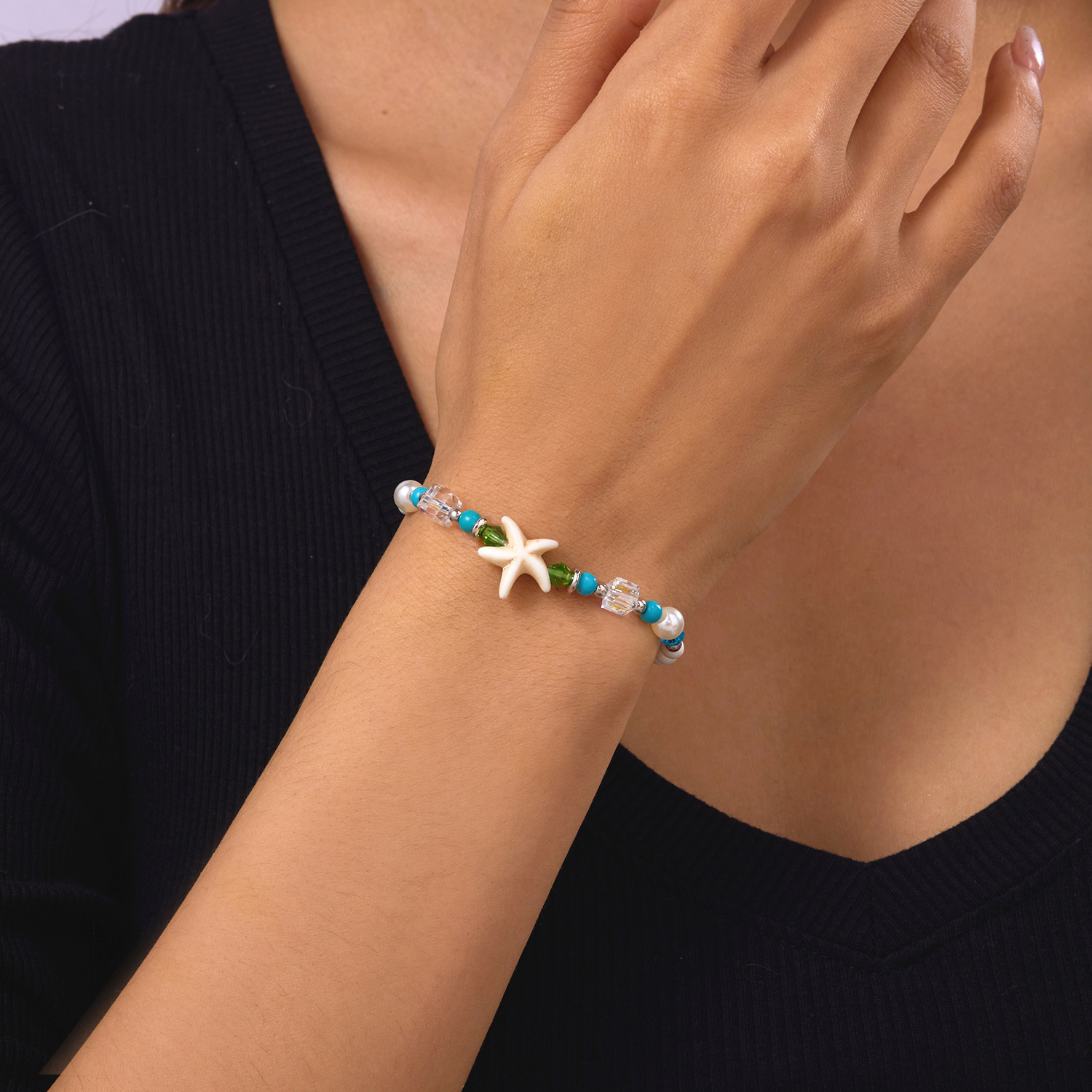 Natural White Shell Bracelet, with Dyed Bamboo Coral & Green Aventurine & Crystal, Flower , white Approx 12.5 Inch