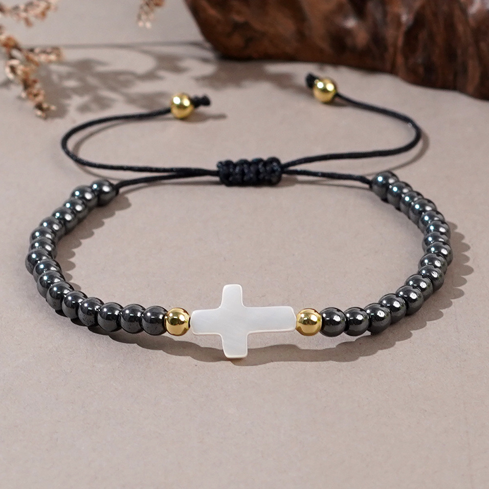 Non Magnetic Hematite Bracelet, with Porcelain & Acrylic, Grade A 5mm Inch