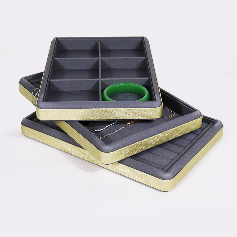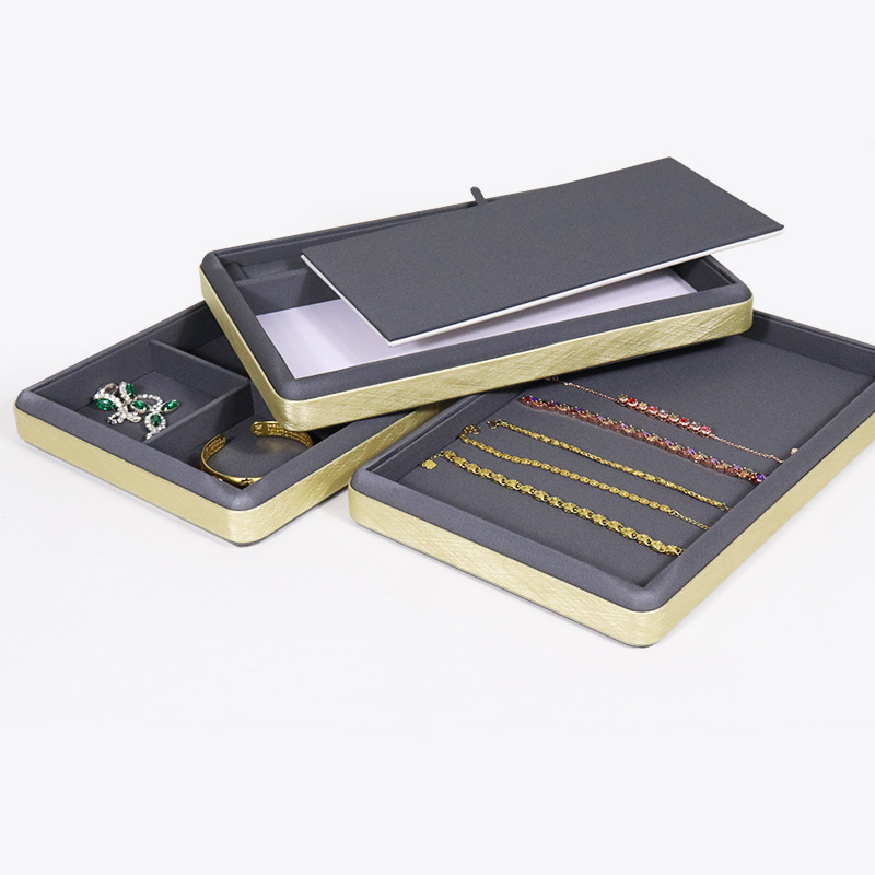 Jewelry Case and Box, PU Leather, with Wood, Rectangle, plated