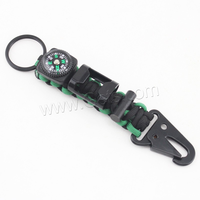 Paracord Key Clasp, with iron ring & Glass & Plastic, with compass & with bottle opener, 130mm, Hole:Approx 25mm, Sold By PC