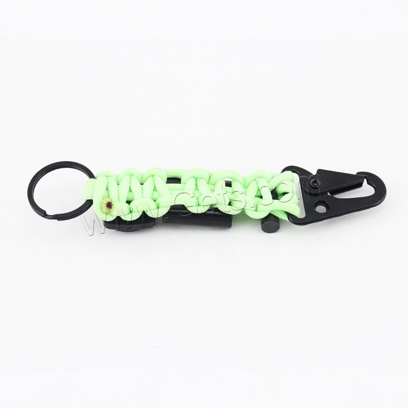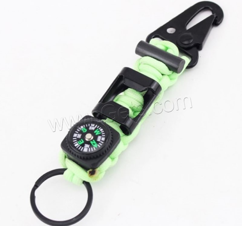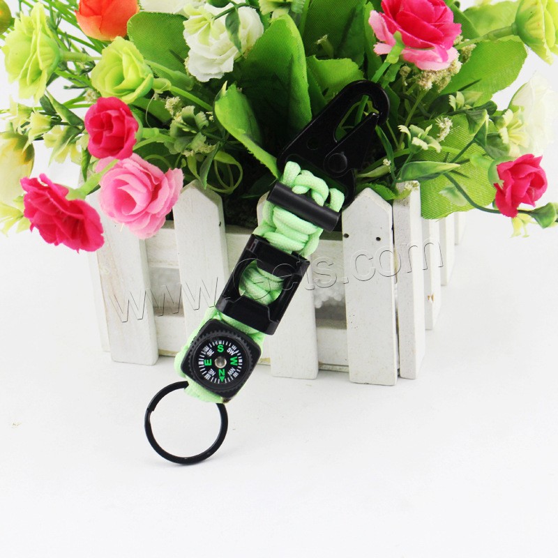 Paracord Key Clasp, with iron ring & Glass & Plastic, with compass & with bottle opener, fluorescent green, 130mm, Hole:Approx 25mm, Sold By PC