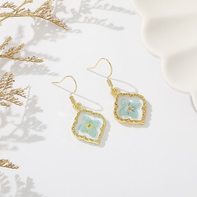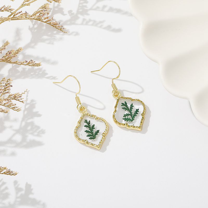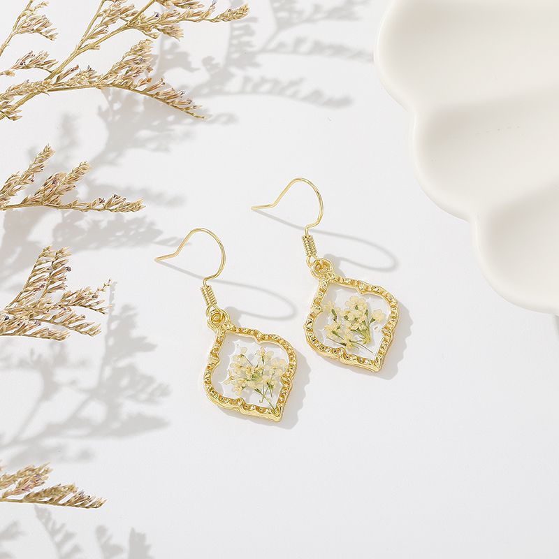 Plastic Drop Earring, with Dried Flower & Zinc Alloy, Geometrical Pattern, epoxy gel, fashion jewelry & for woman, more colors for choice, 18x30mm, Sold By Pair