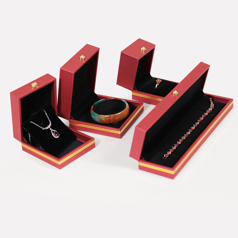 Velvet Jewelry Set Box, PU Leather, with Velveteen & ABS Plastic red
