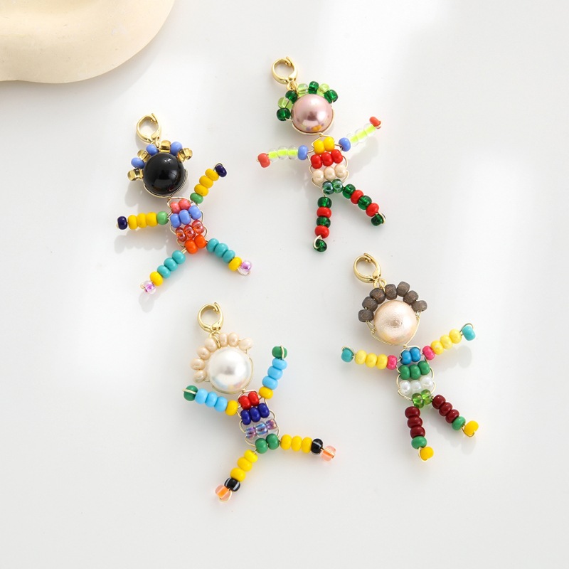 Plastic Key Chain, Seedbead, with Plastic Pearl, handmade, DIY, more colors for choice, 63x37mm, Sold By PC