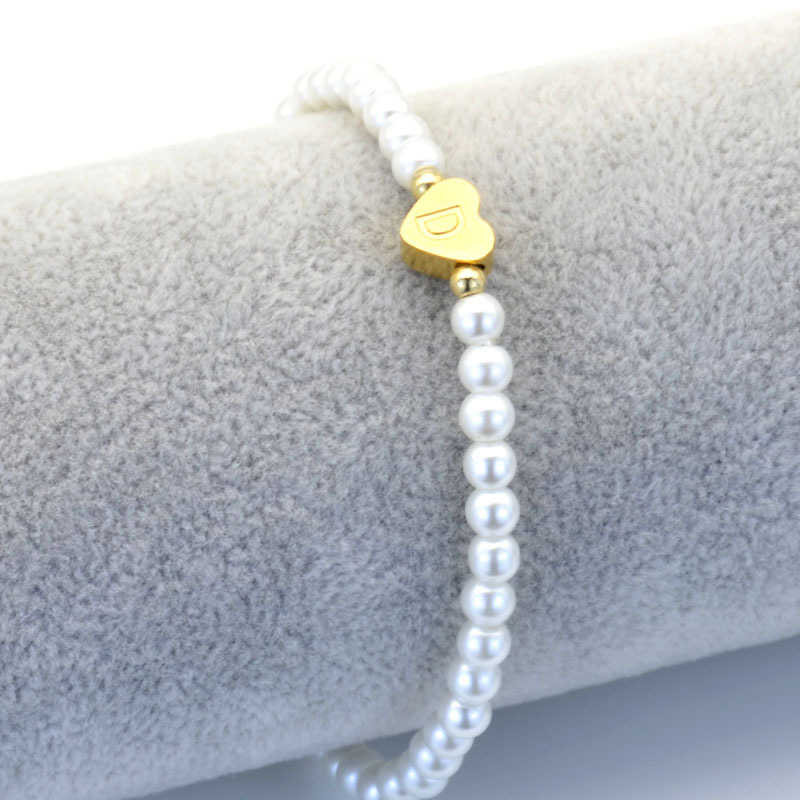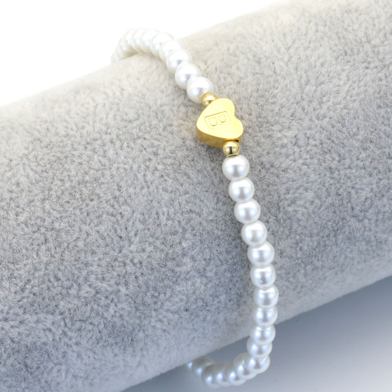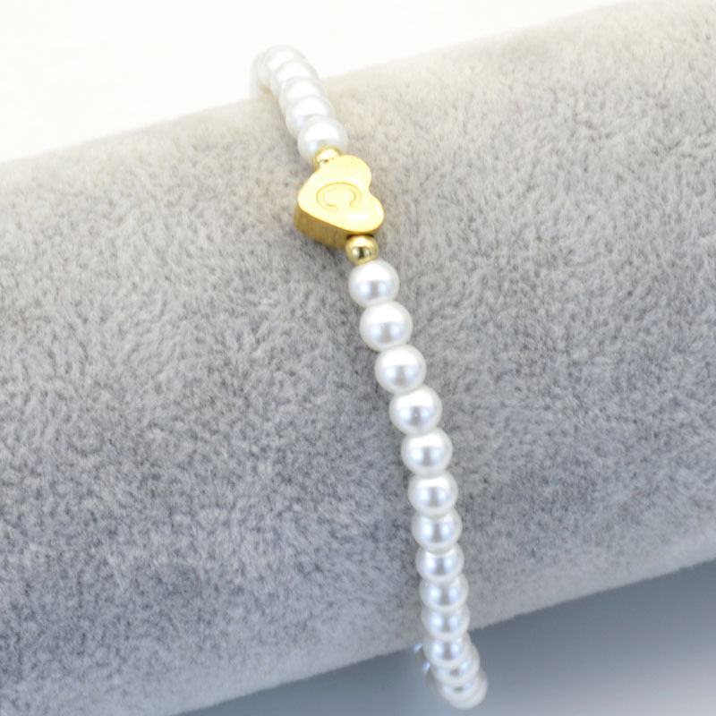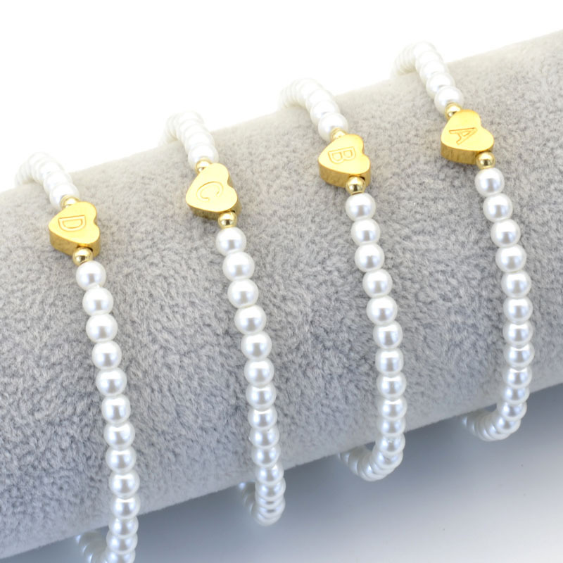 Plastic Pearl Bracelet, with 304 Stainless Steel, Heart, gold color plated, Unisex & different designs for choice & with letter pattern, Length:Approx 6-7 Inch, Sold By PC