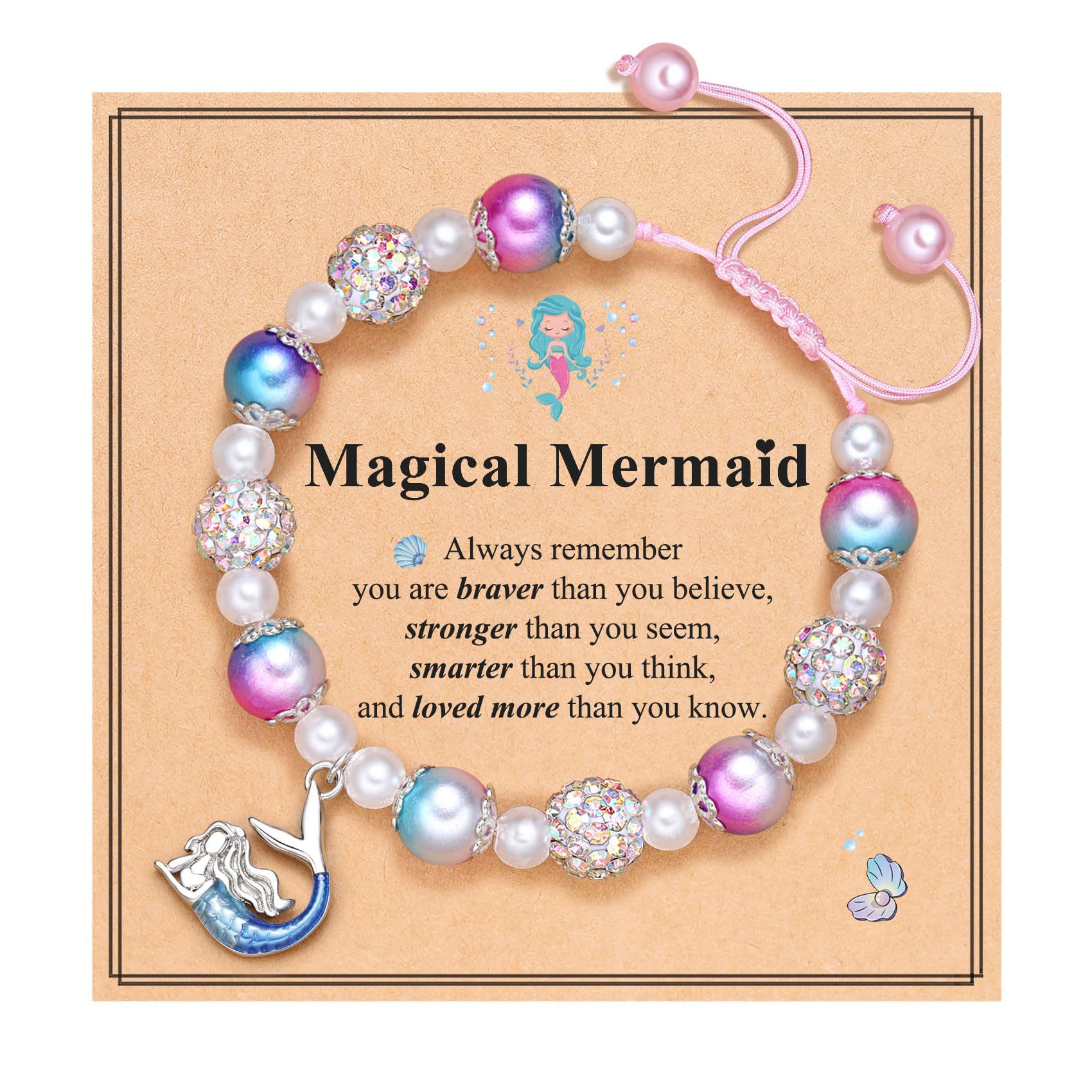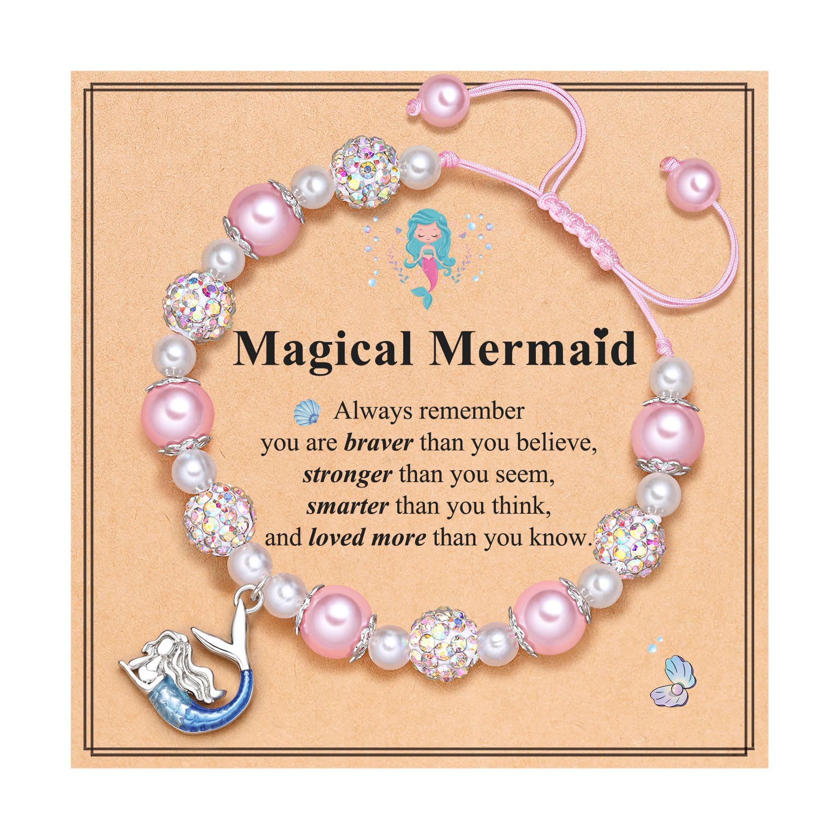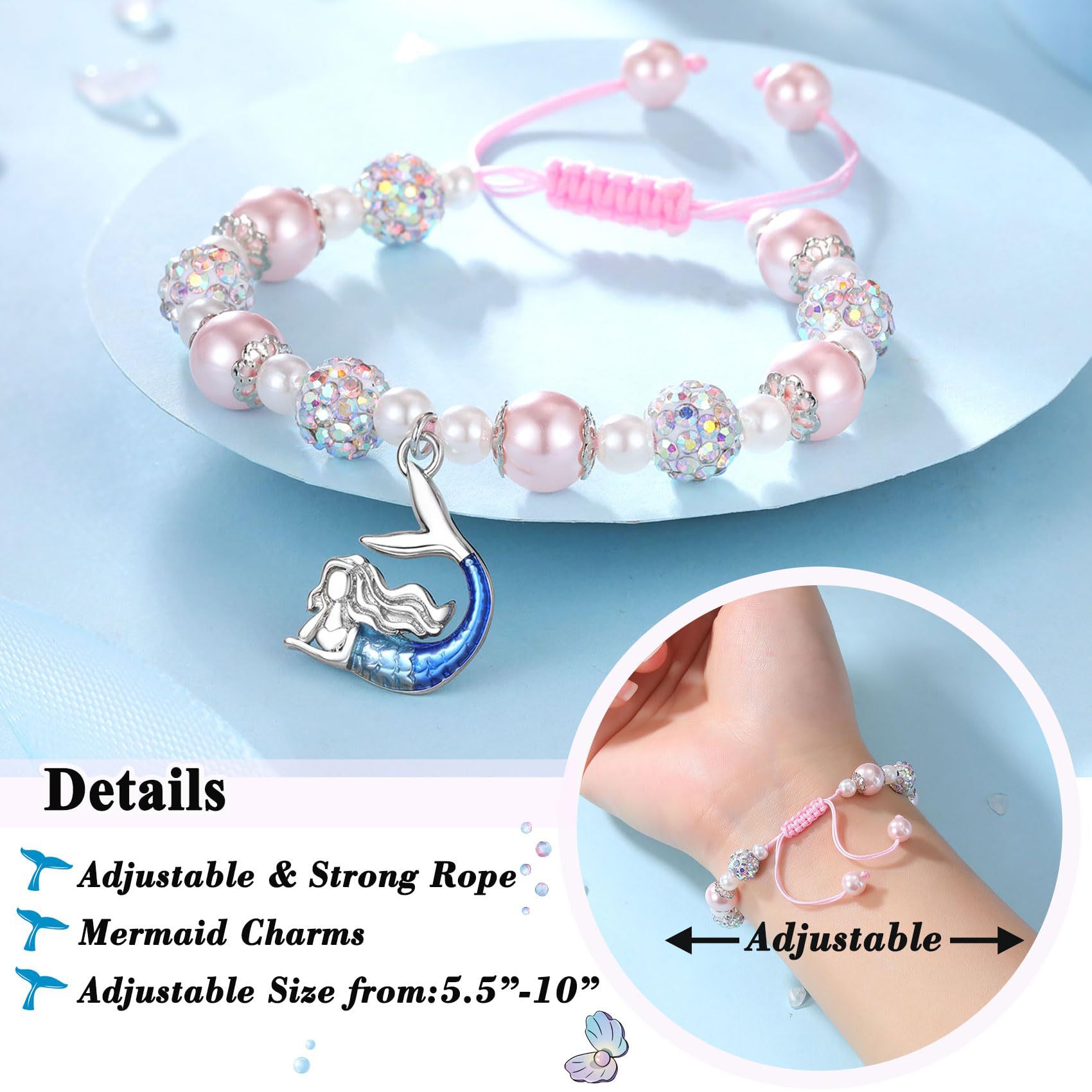 Plastic Pearl Bracelet, with Polyester Cord & Zinc Alloy, Mermaid, handmade, for woman & with rhinestone, more colors for choice, Length:Approx 5.5-10 Inch, Sold By PC