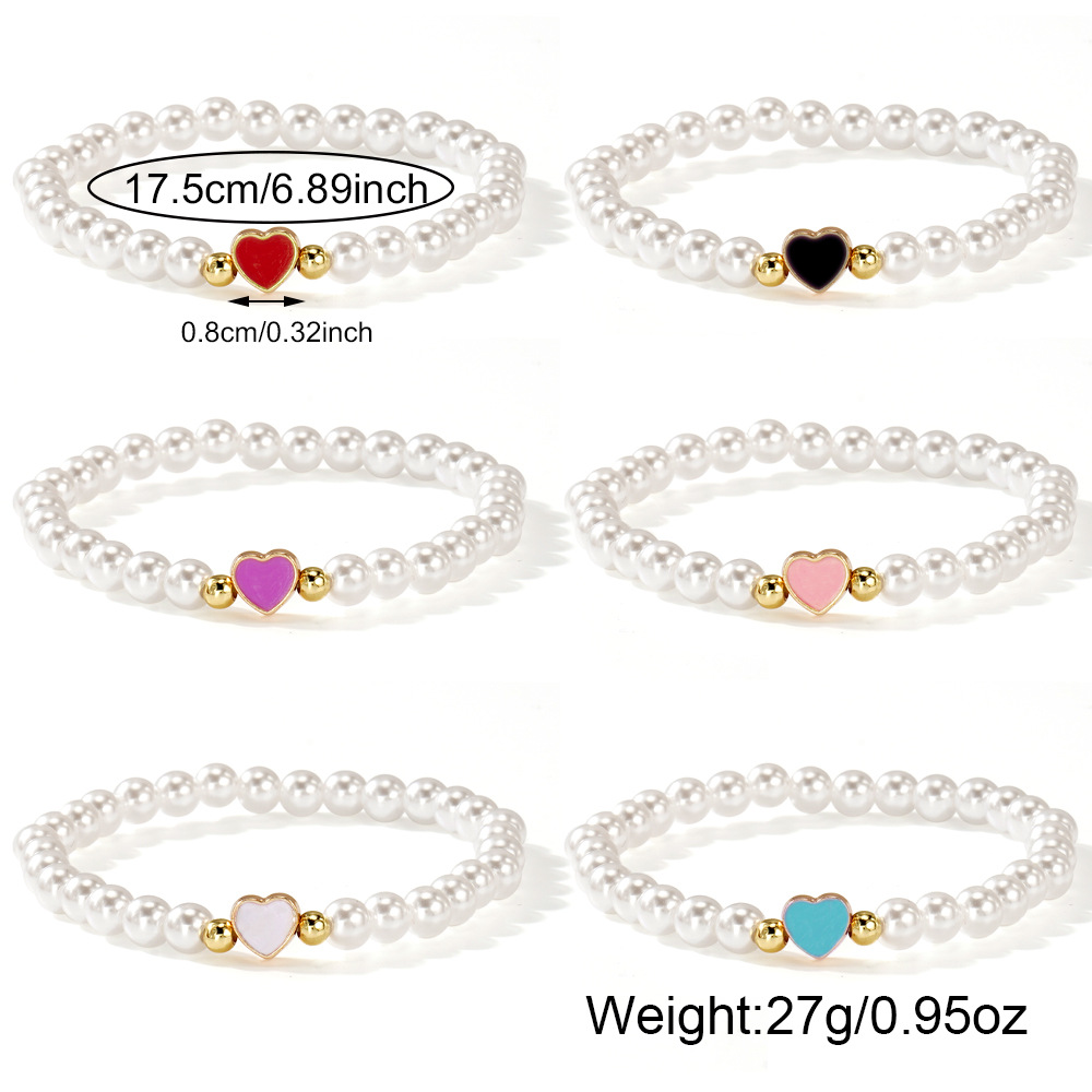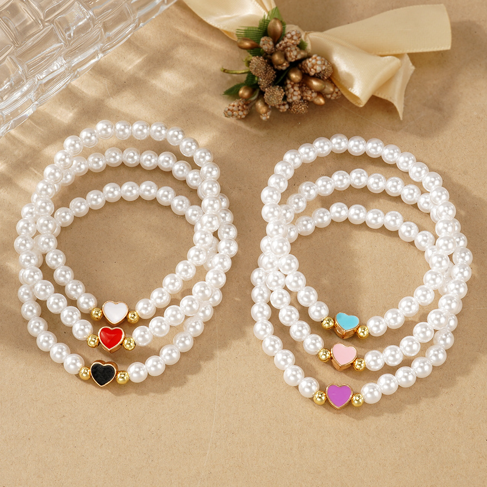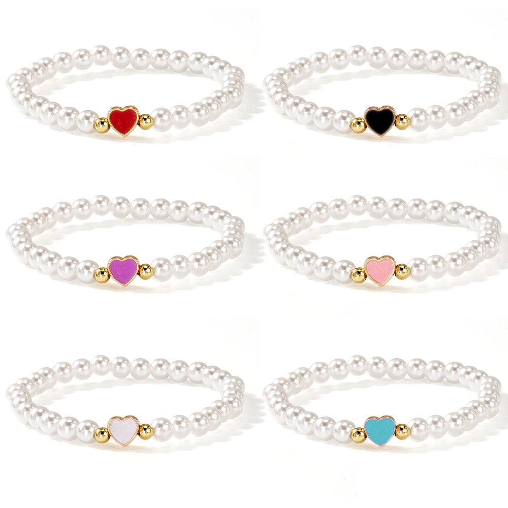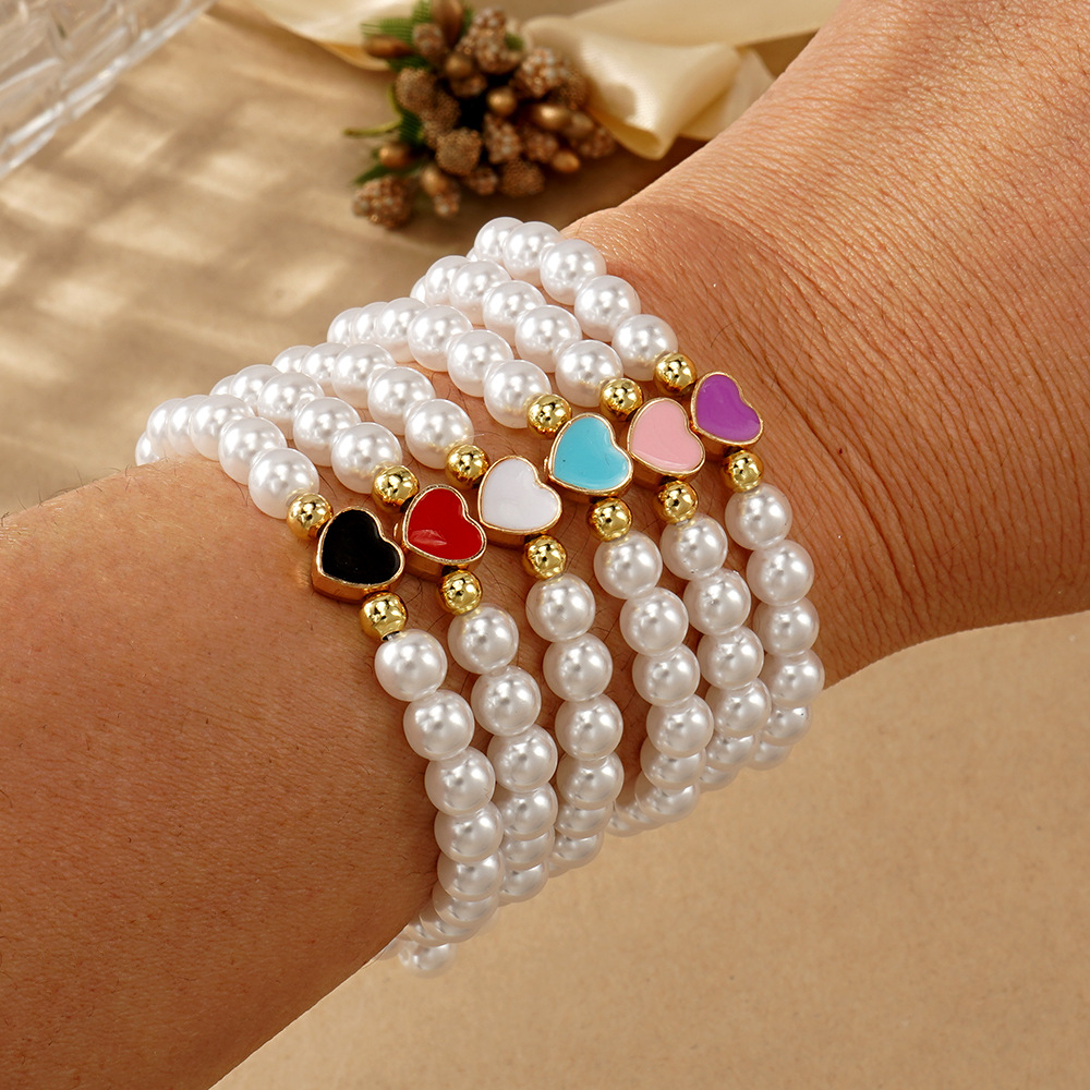 Plastic Pearl Bracelets, with Elastic Thread, Heart, different styles for choice & for woman & enamel, more colors for choice, Sold By PC