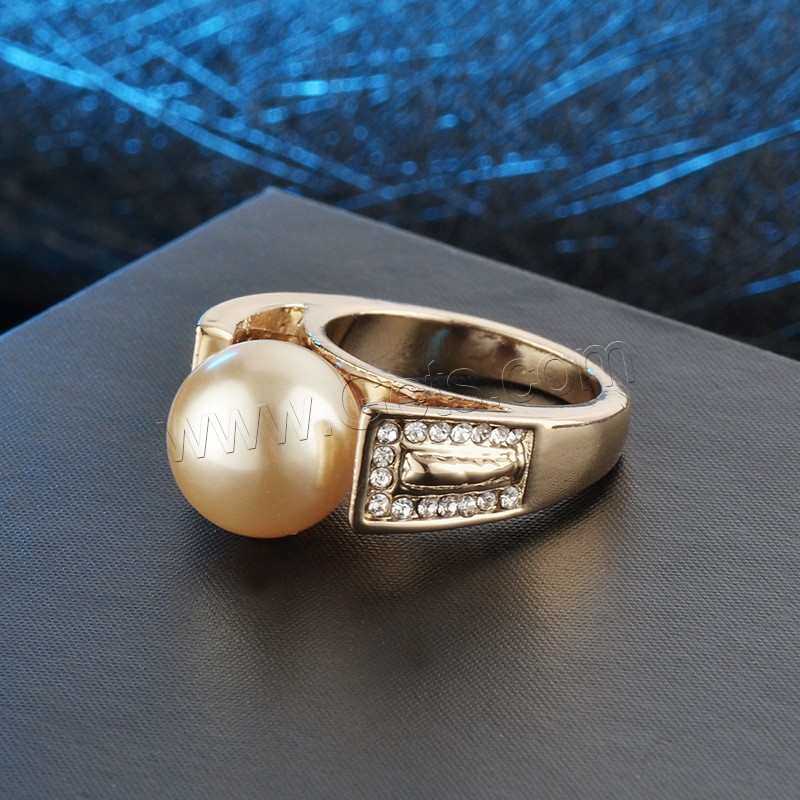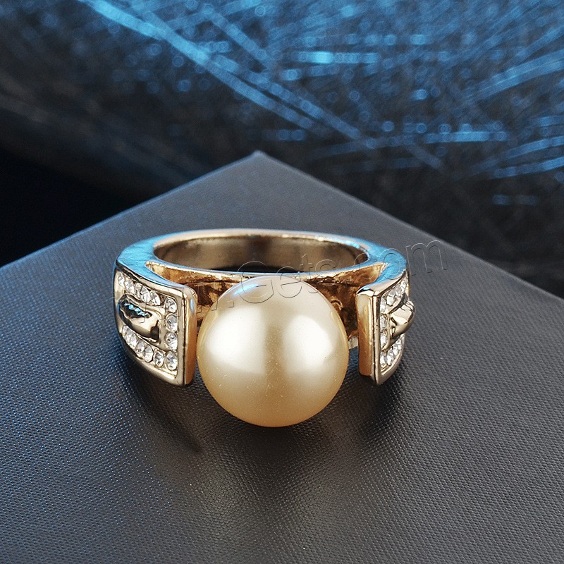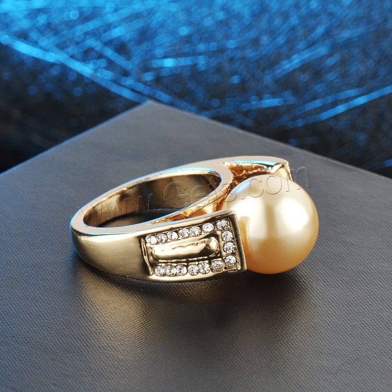Plastic Pearl Zinc Alloy Finger Ring, with Plastic Pearl, different size for choice & for woman & with rhinestone, golden, 24x12mm, Sold By PC