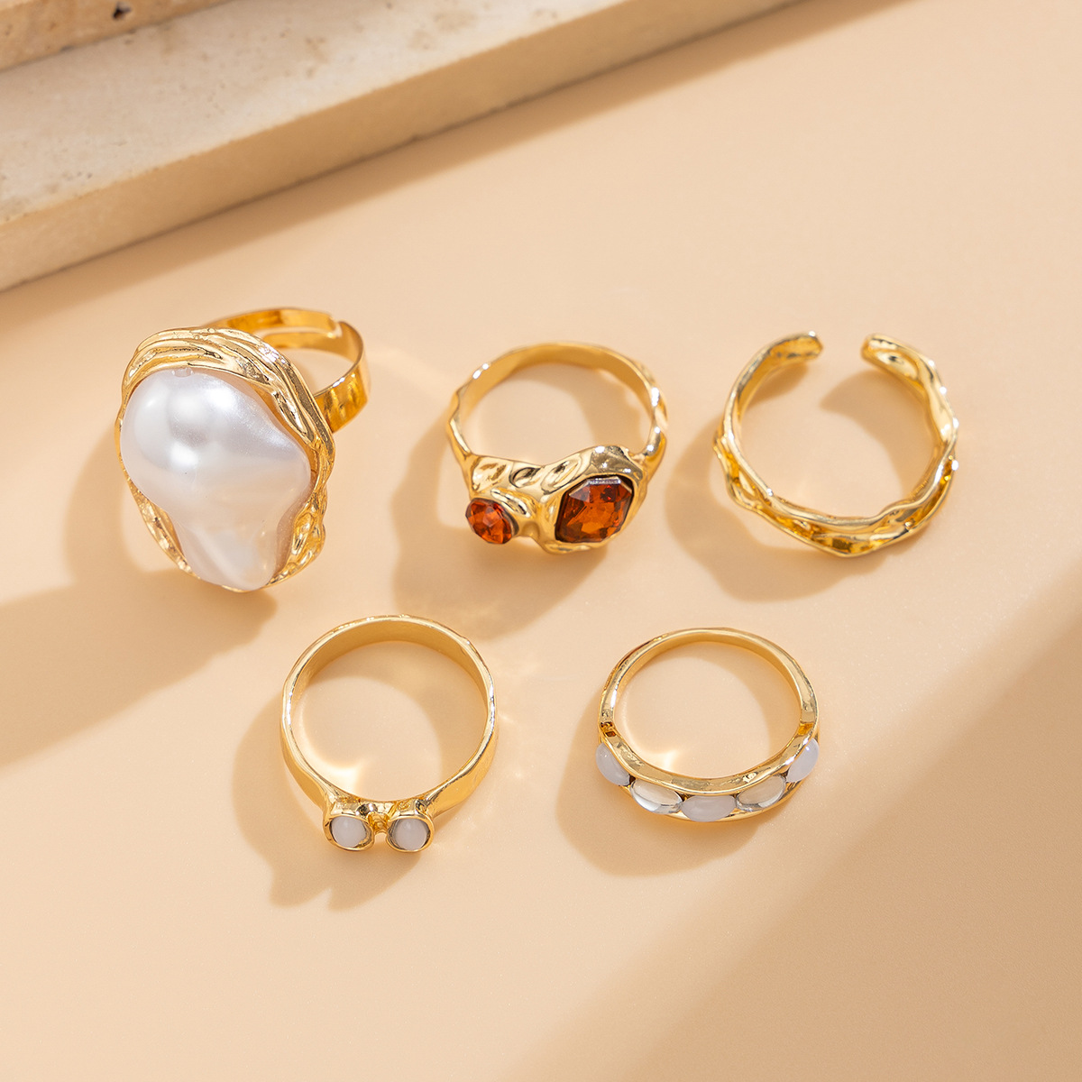 Plastic Pearl Zinc Alloy Finger Ring, with Plastic Pearl, gold color plated, fashion jewelry, more colors for choice, Sold By Bag