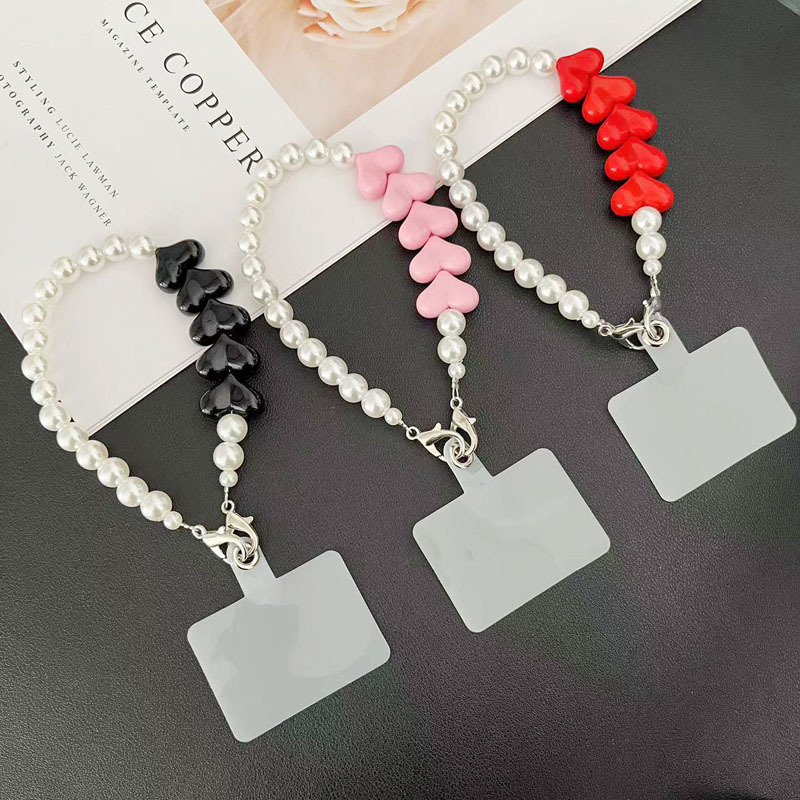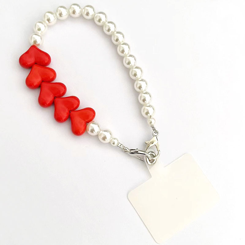 Plastic Pendant Mobile Phone Lanyard, Resin, with Plastic Pearl, Heart, handmade, anti-skidding & for woman, more colors for choice, Length:Approx 29 cm, Sold By PC