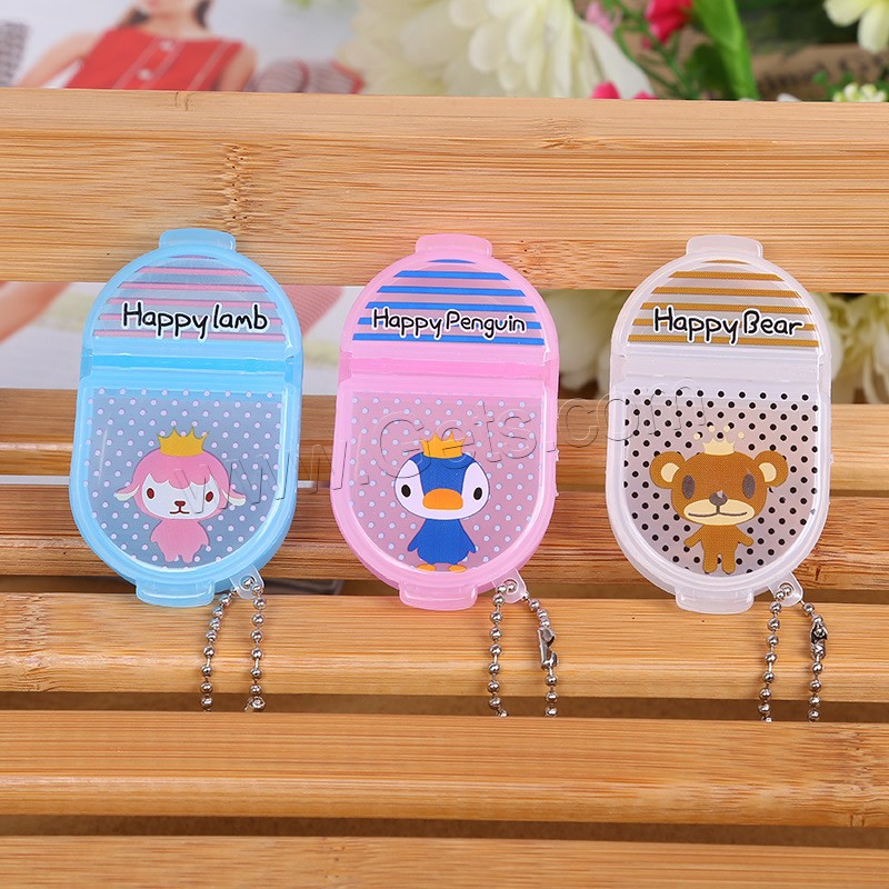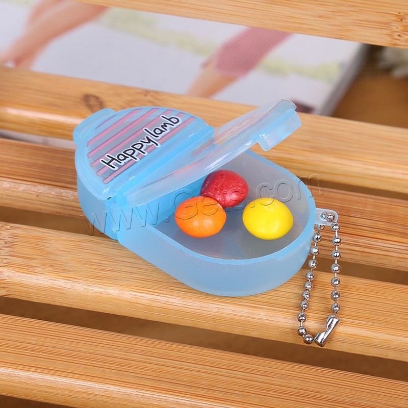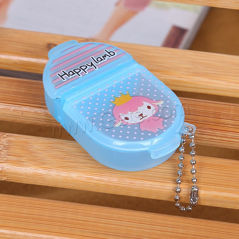 Plastic Pill Box, with iron chain, Flat Oval, 2 cells & transparent & different designs for choice, 70x40x15mm, Sold By PC