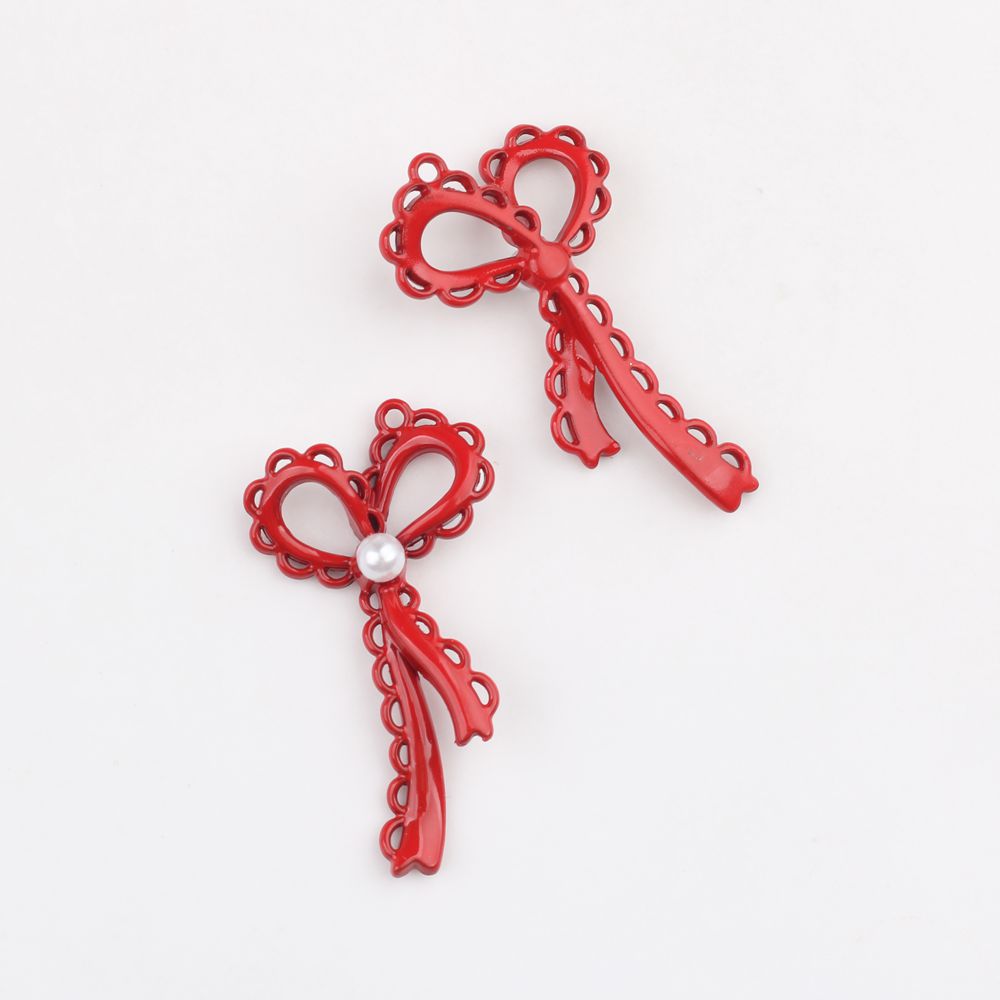 Plastic Zinc Alloy Pendants, with Plastic Pearl, Bowknot, painted, DIY, more colors for choice, 38x20mm, 100PCs/Bag, Sold By Bag