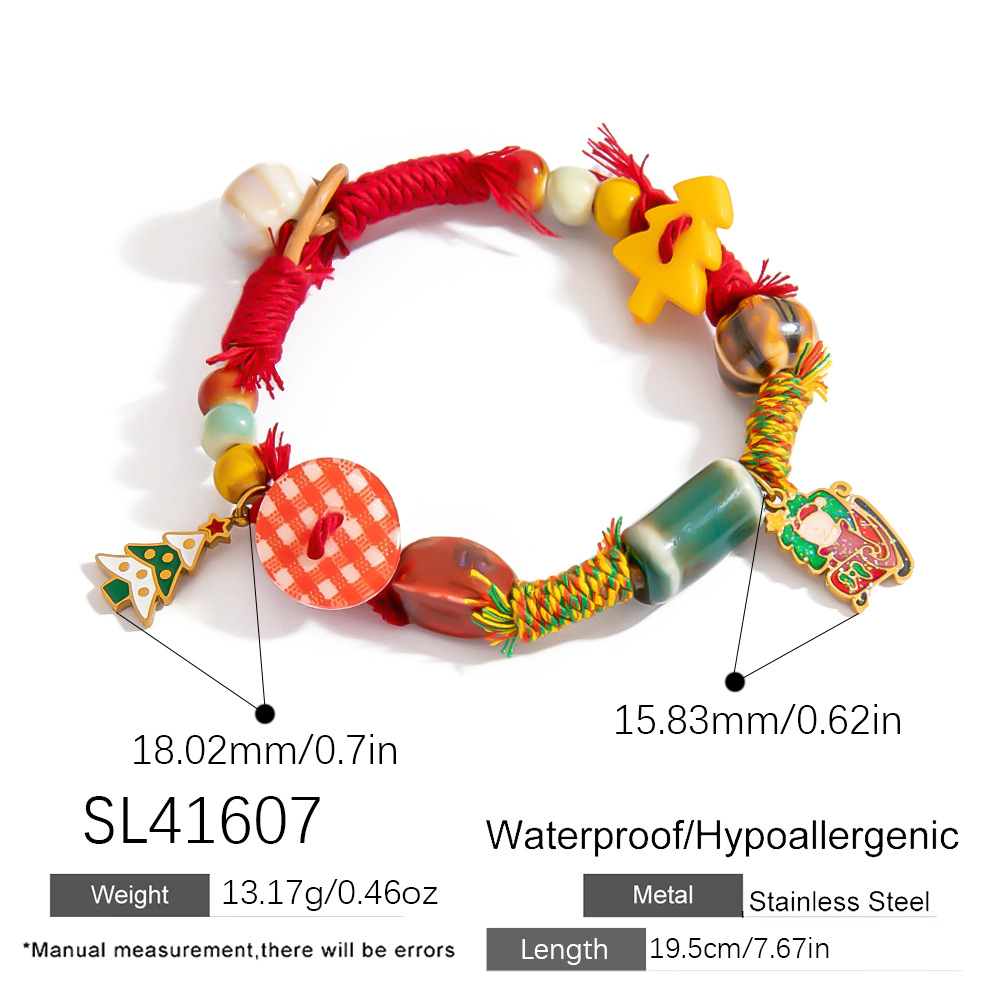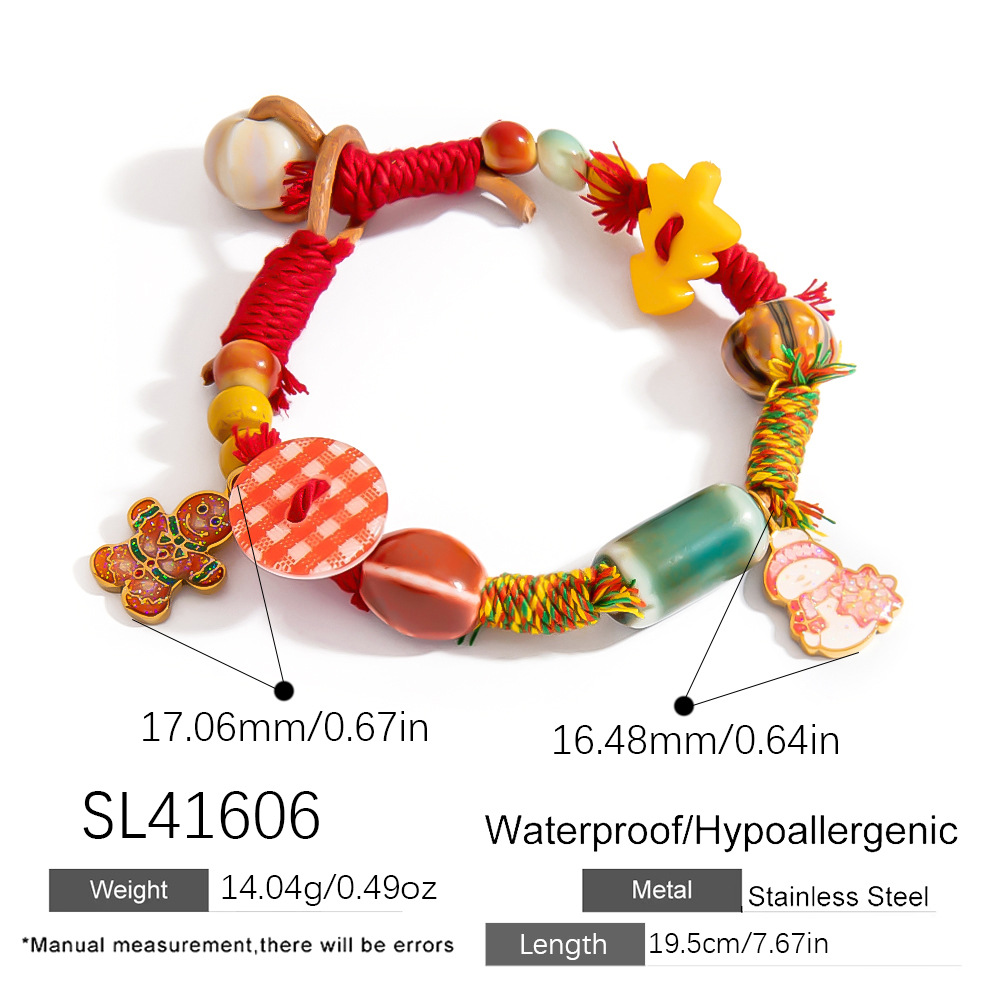 Porcelain Bracelets, 304 Stainless Steel, with Porcelain & Wax Cord, gold color plated, Christmas Design & enamel, more colors for choice, Sold By PC