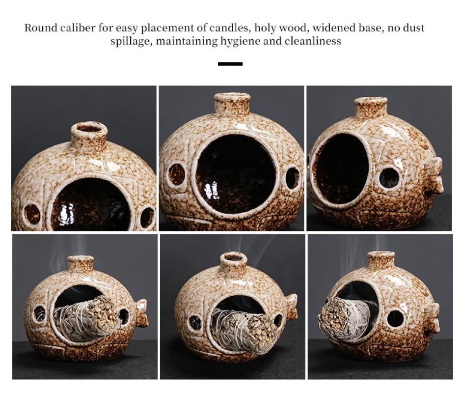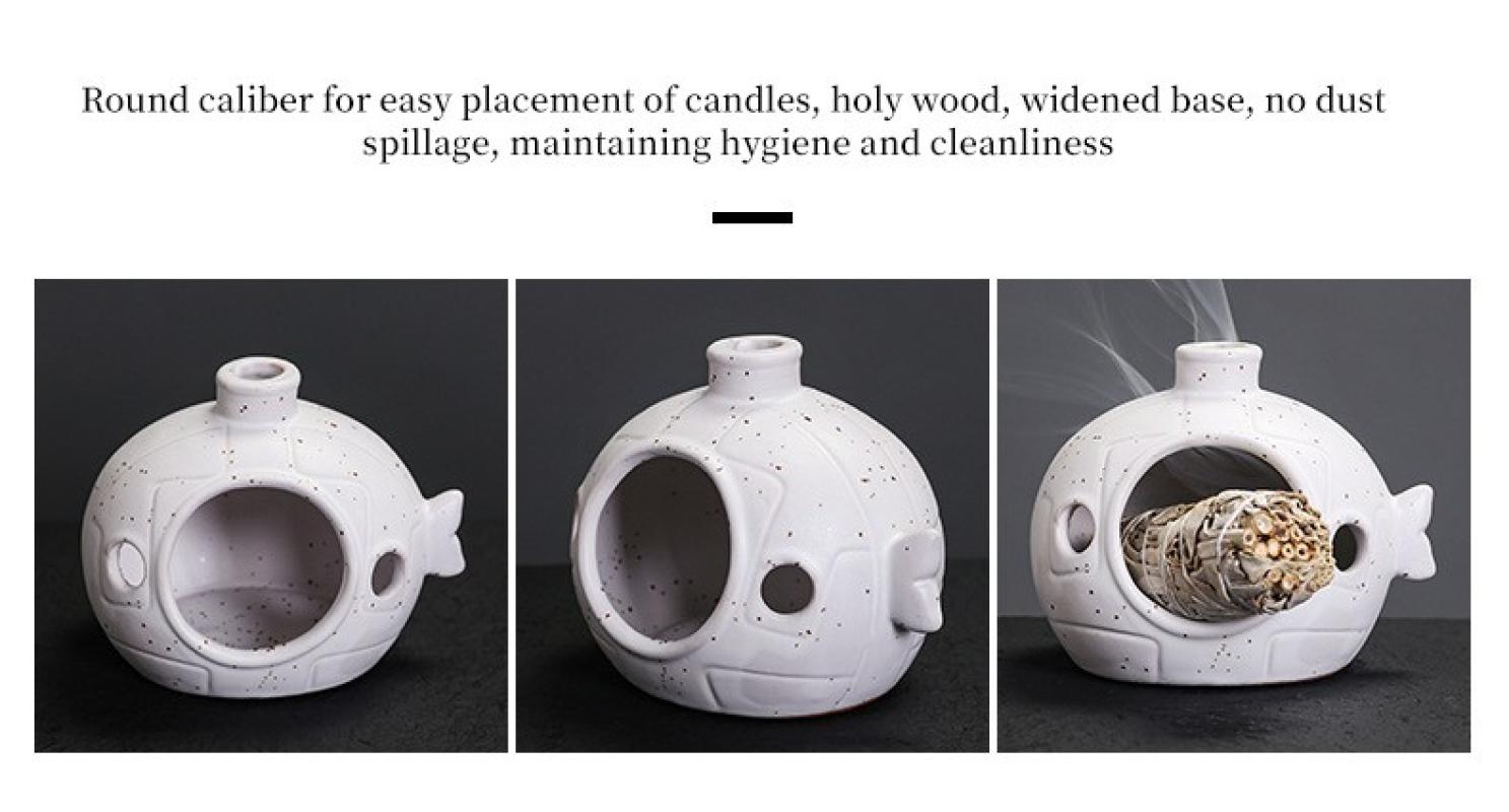 Porcelain Incense Burner, Round, purify the air & hollow, white