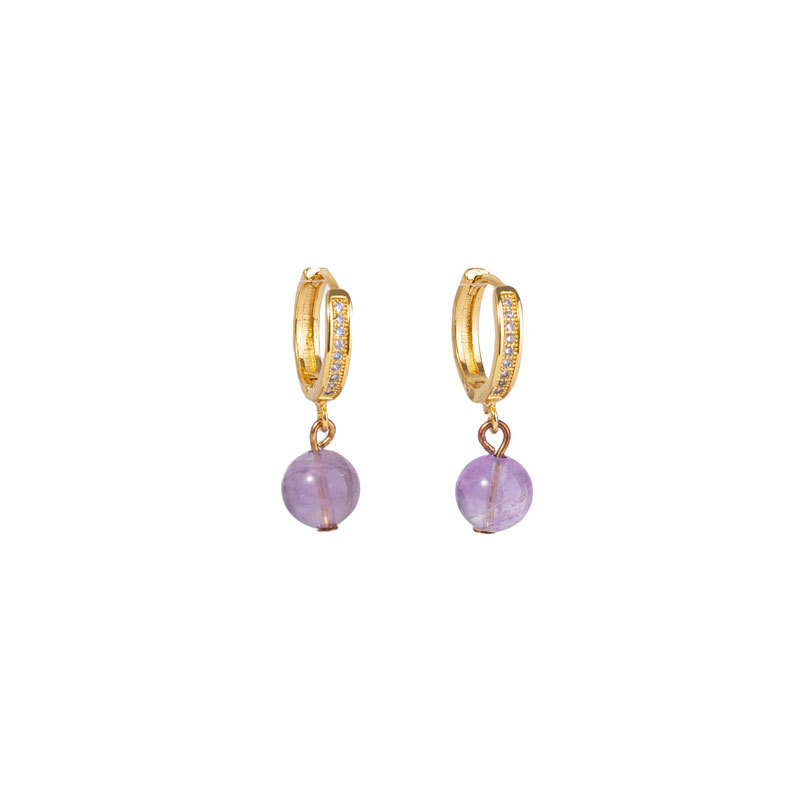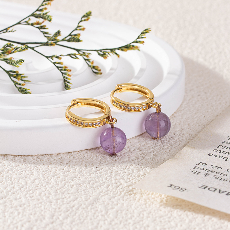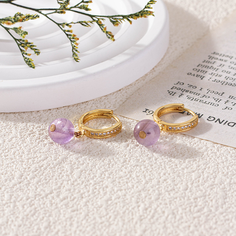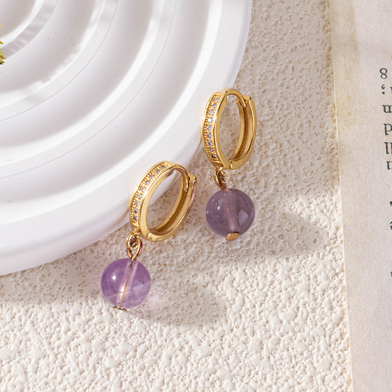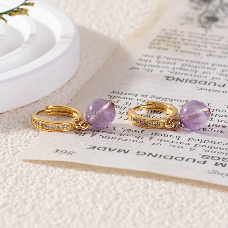 Quartz Earring, Brass, with Amethyst, Round, gold color plated, micro pave cubic zirconia & for woman, purple, 8mm, Sold By Pair