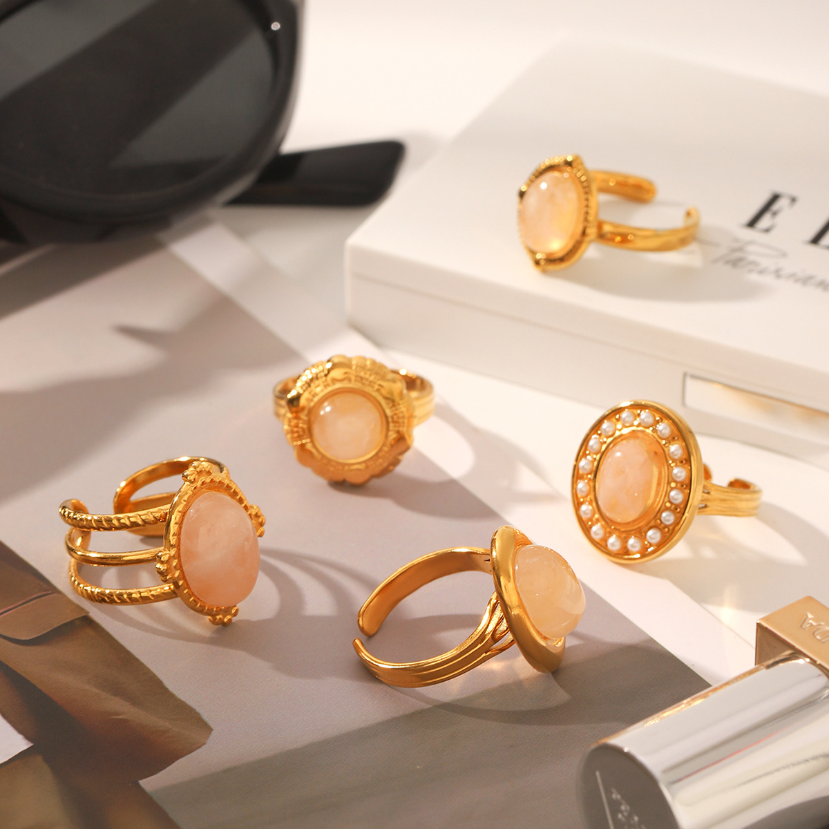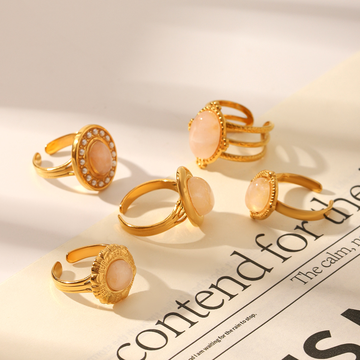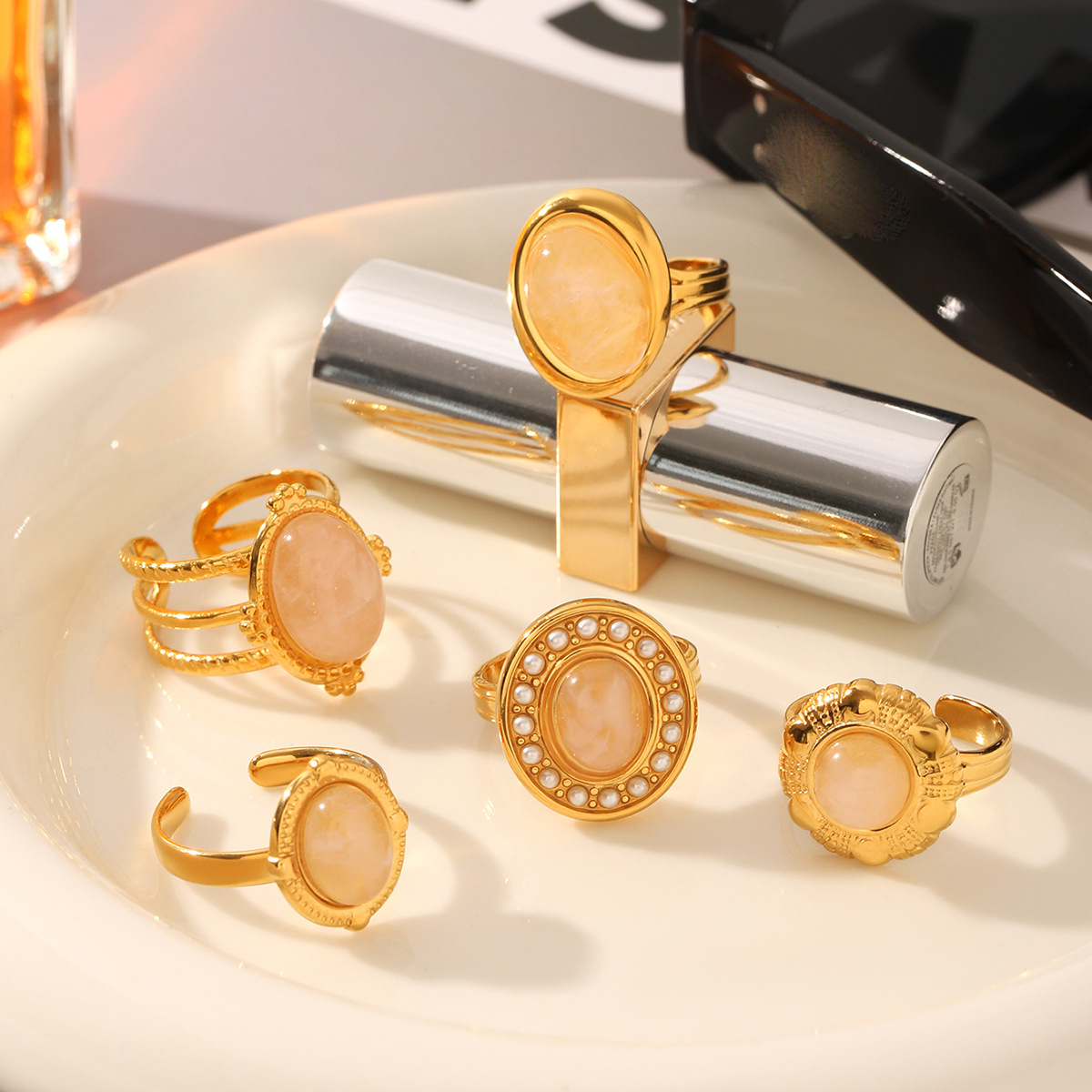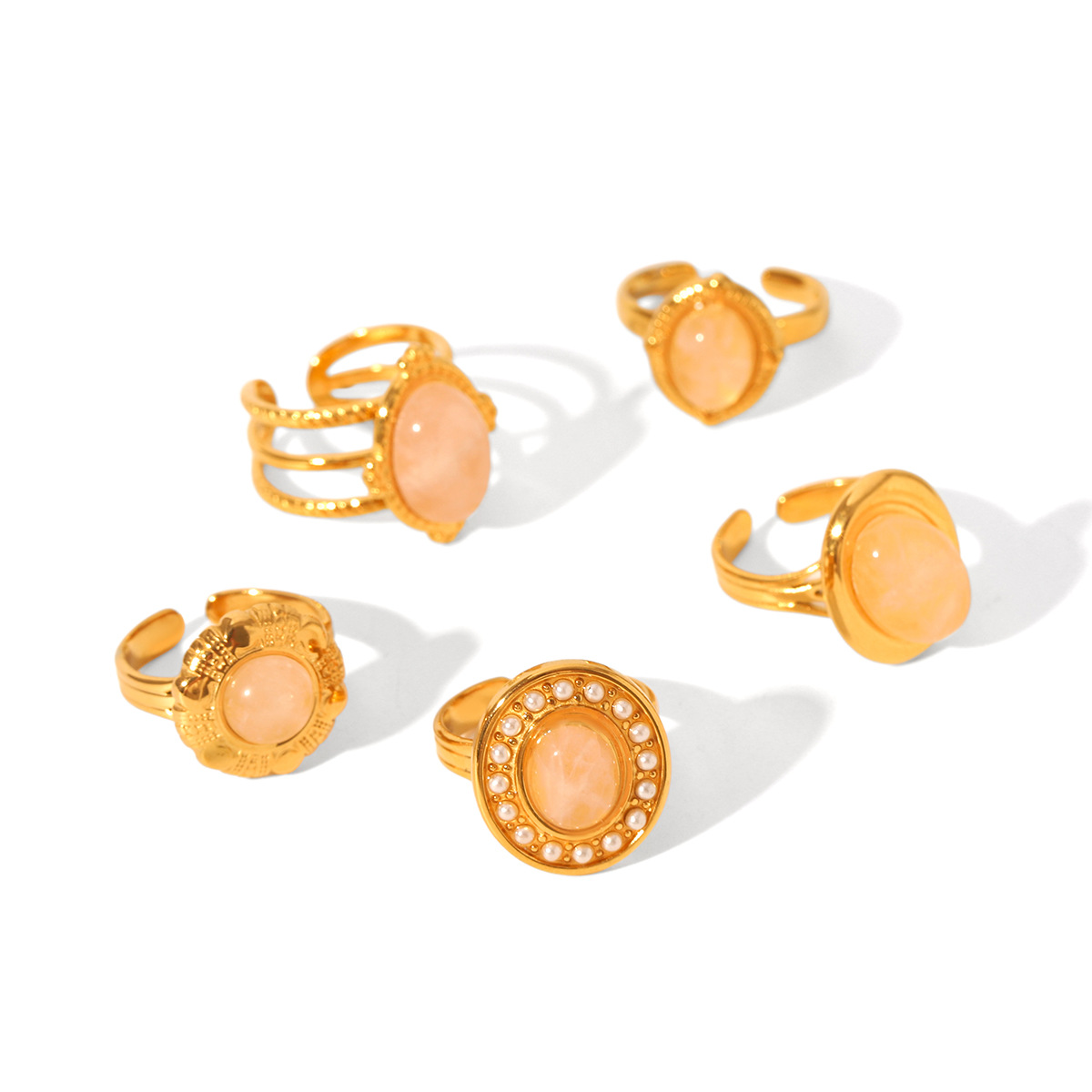 Quartz Finger Ring, 304 Stainless Steel, with Rose Quartz, plated, fashion jewelry & different styles for choice & for woman, golden, Sold By PC