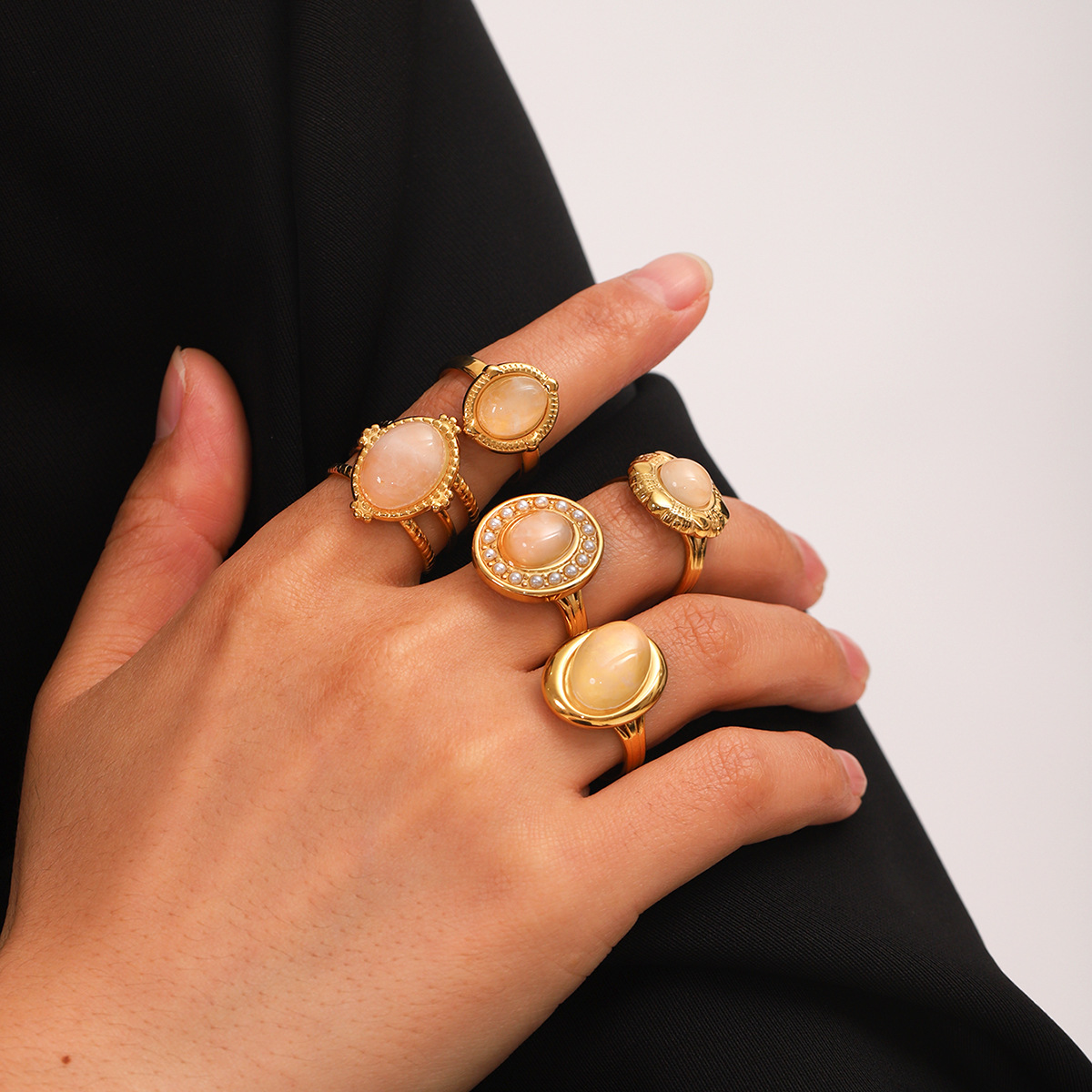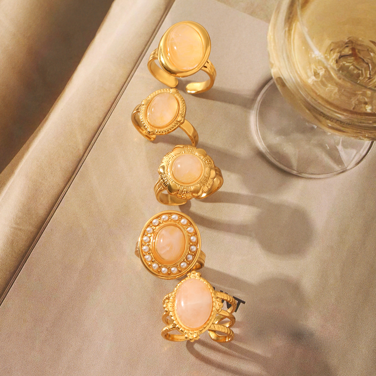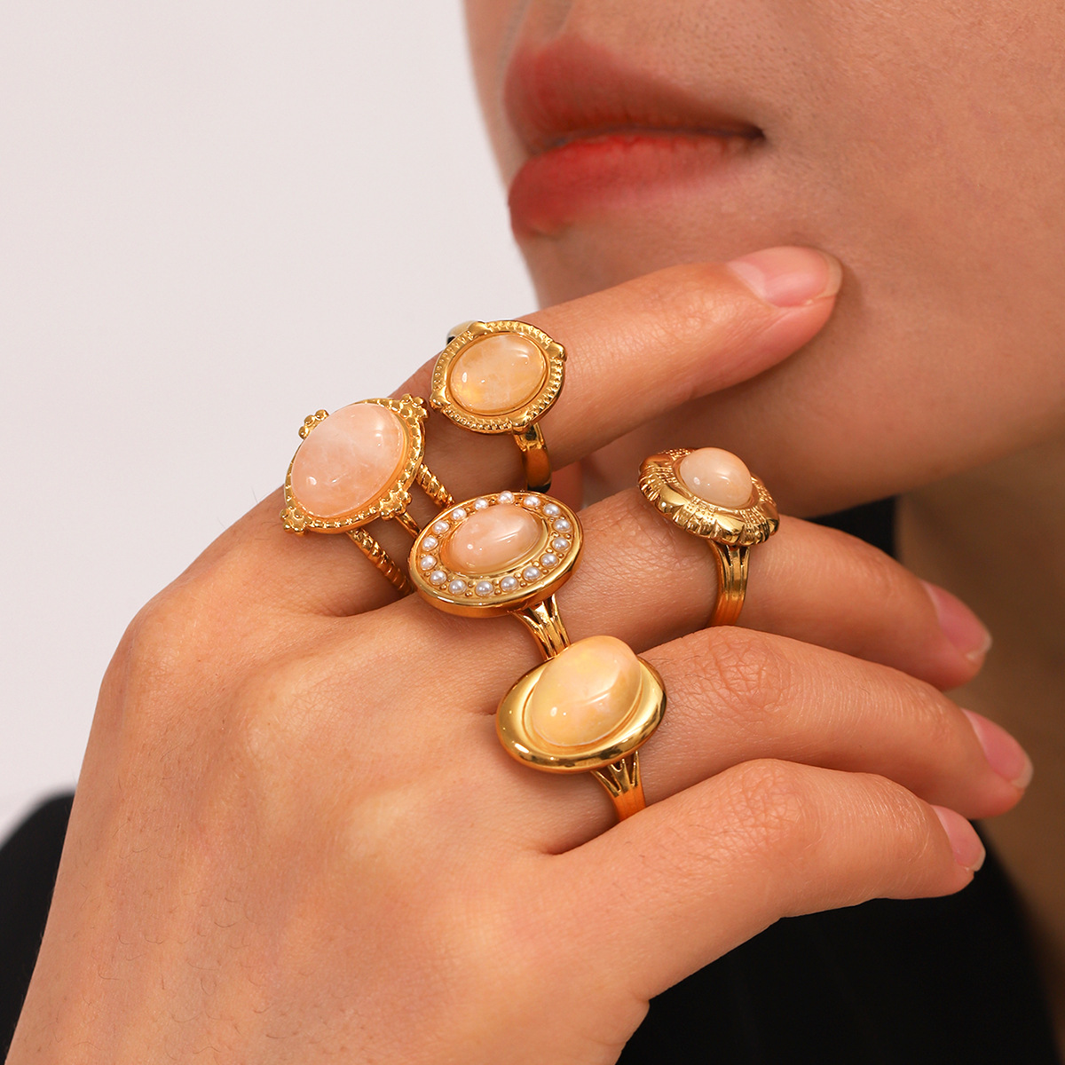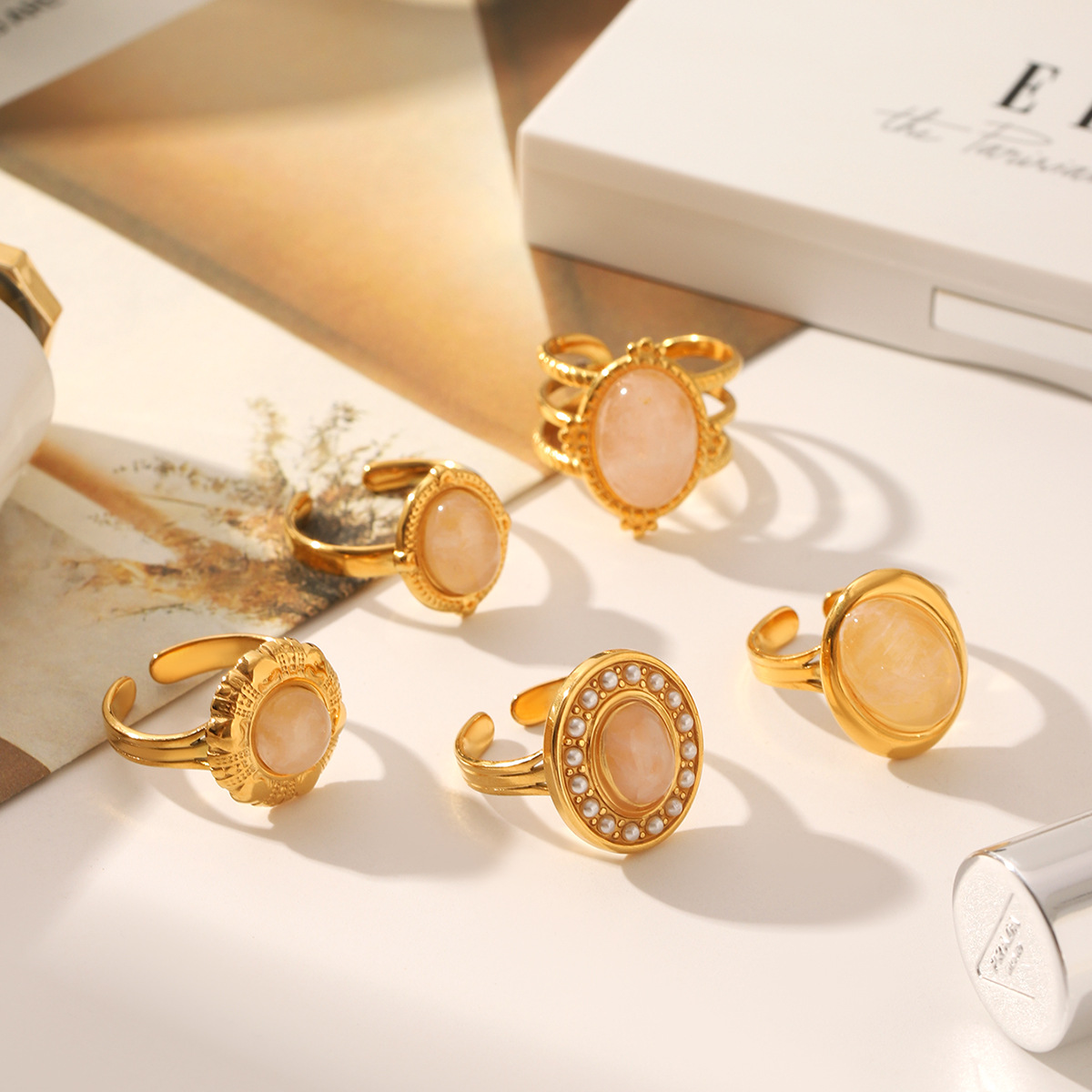 Quartz Finger Ring, 304 Stainless Steel, with Rose Quartz, plated, fashion jewelry & different styles for choice & for woman, golden, Sold By PC