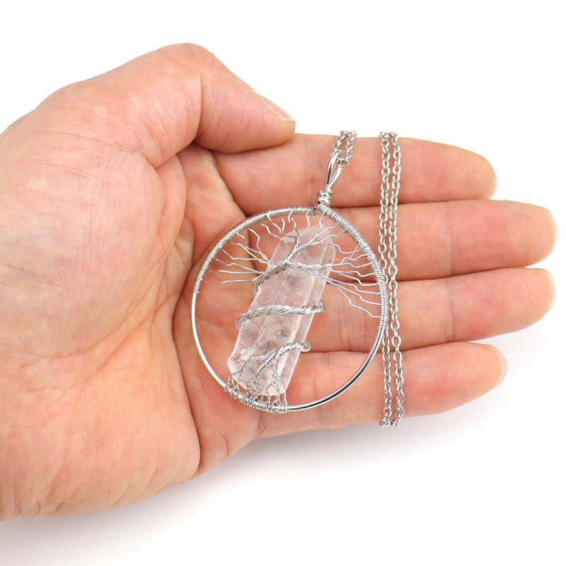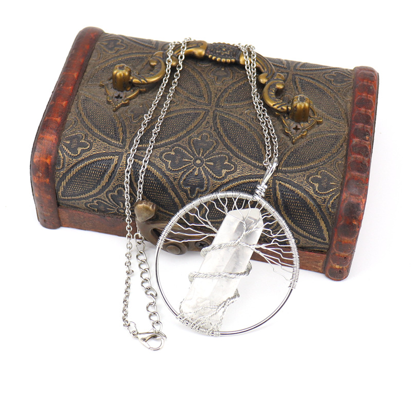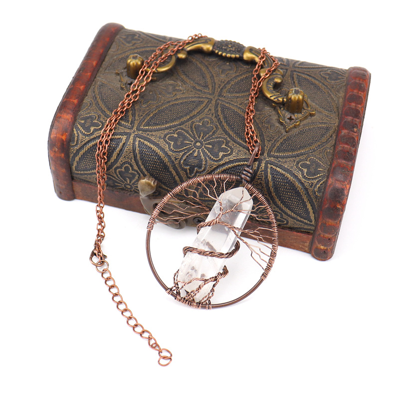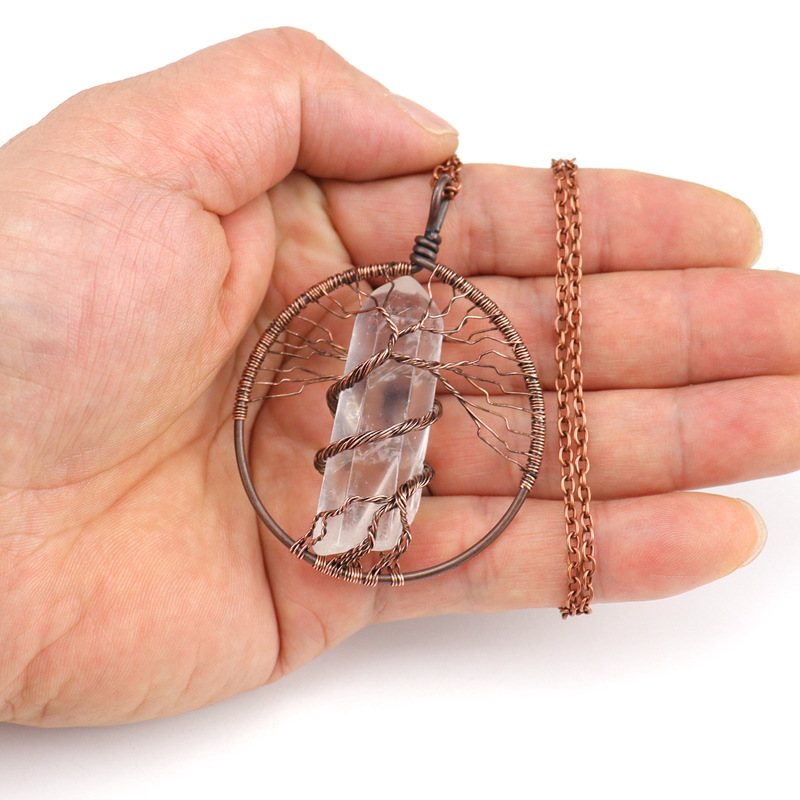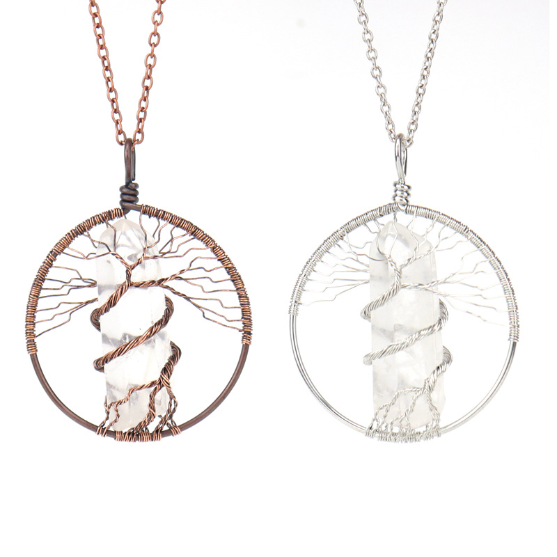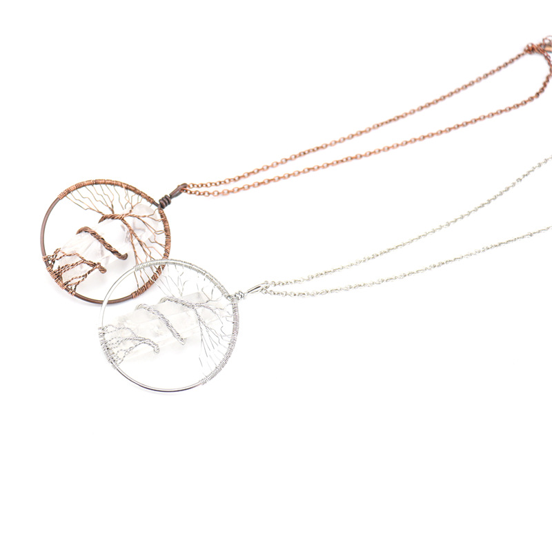 Quartz Necklace, with brass wire & Brass, handmade, fashion jewelry & for woman & hollow, more colors for choice, Sold By PC