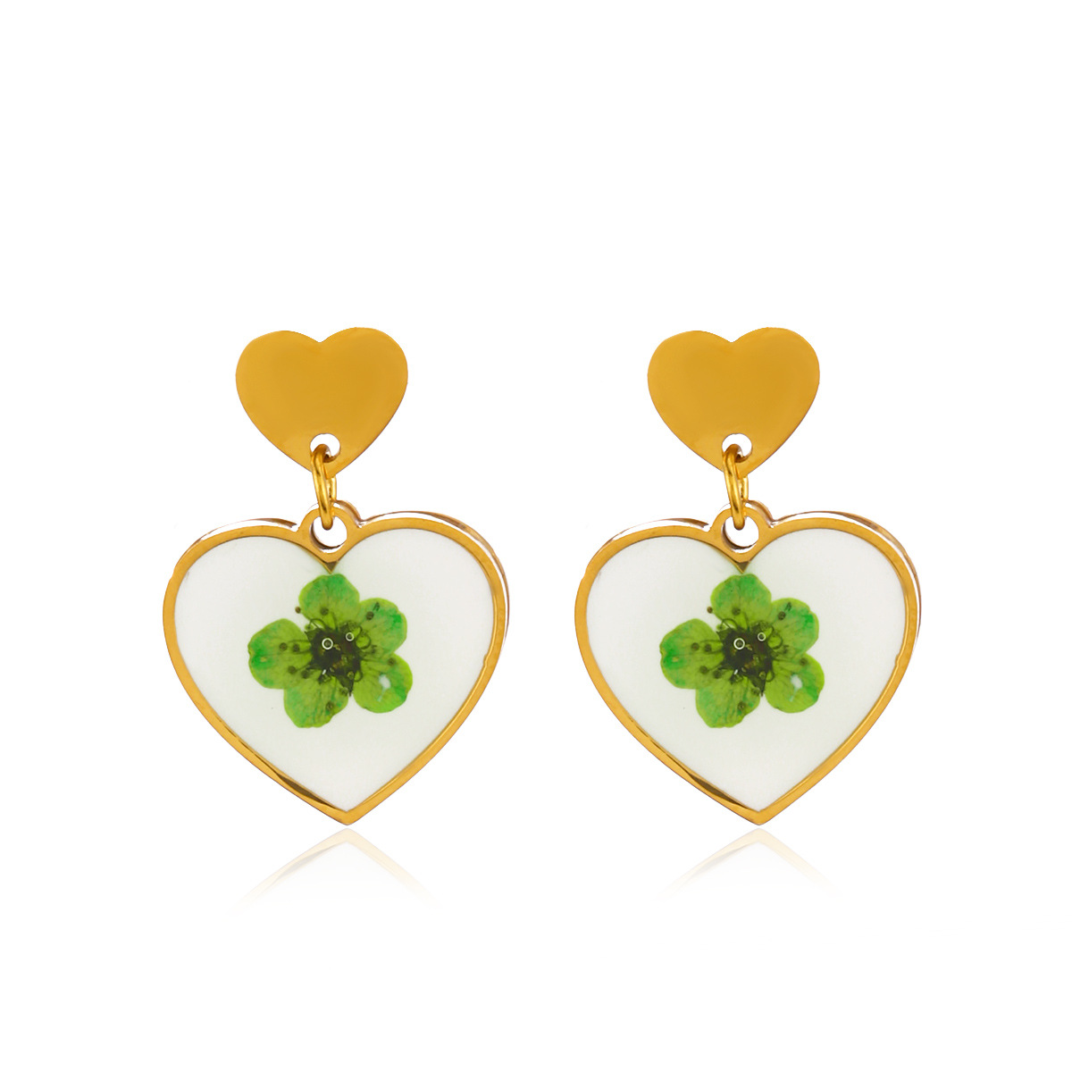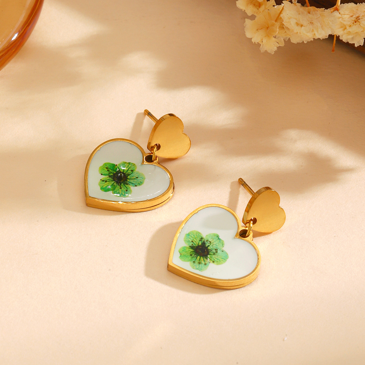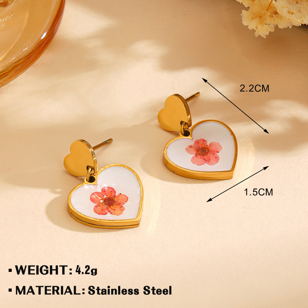 Resin Drop Earring, 304 Stainless Steel, with Dried Flower & Resin, Heart, 18K gold plated, fashion jewelry & different designs for choice & for woman, Sold By Pair