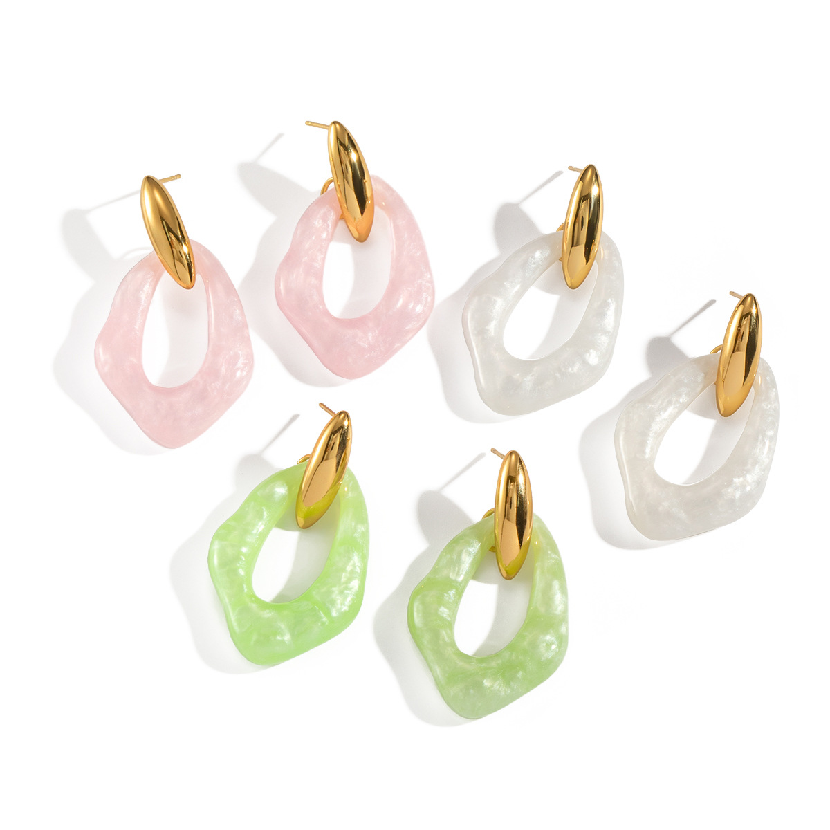 Resin Drop Earring, 304 Stainless Steel, with Resin, gold color plated, fashion jewelry, more colors for choice, Sold By Pair