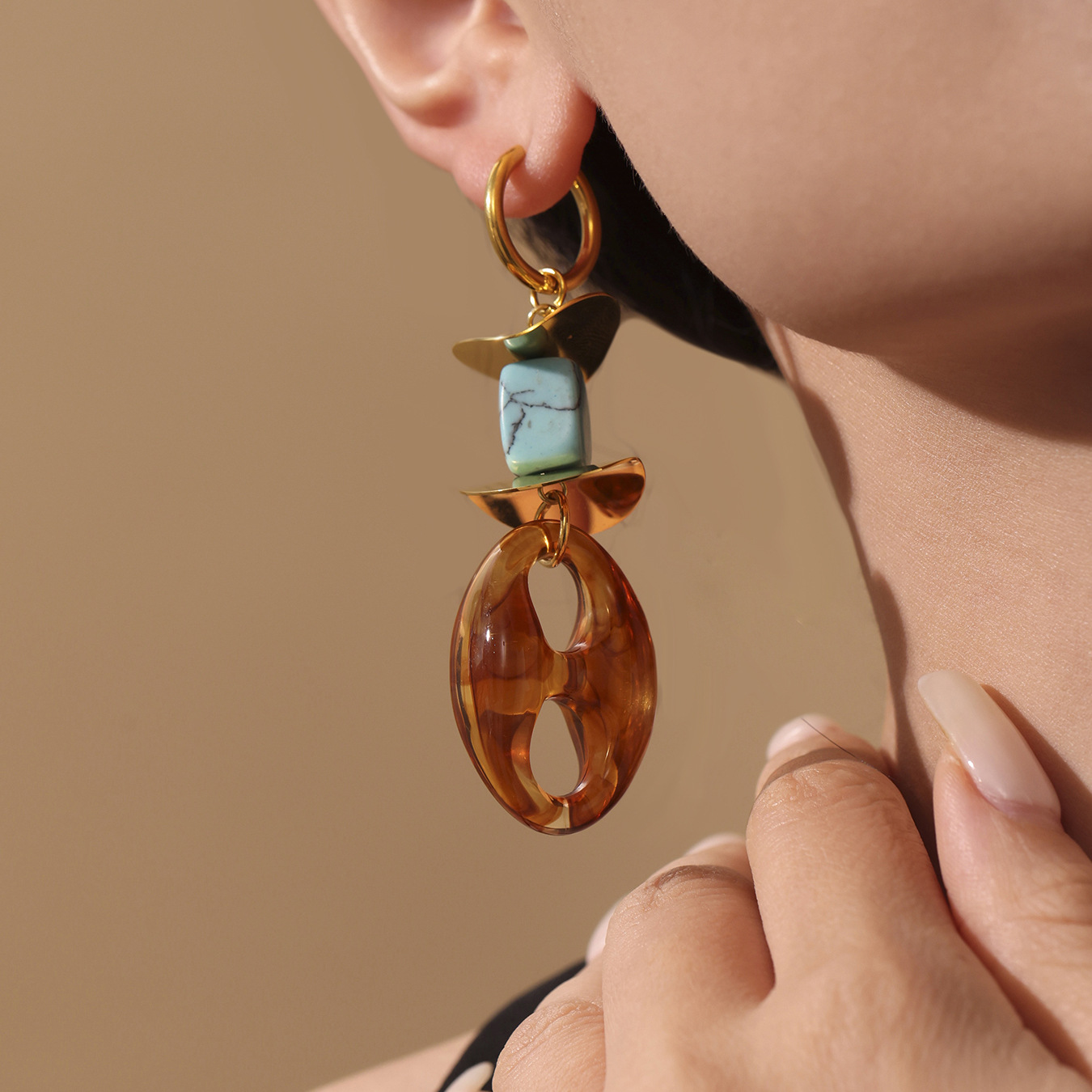 Resin Drop Earring, 304 Stainless Steel, with Synthetic Turquoise & Resin, plated, fashion jewelry & for woman, golden, Sold By Pair