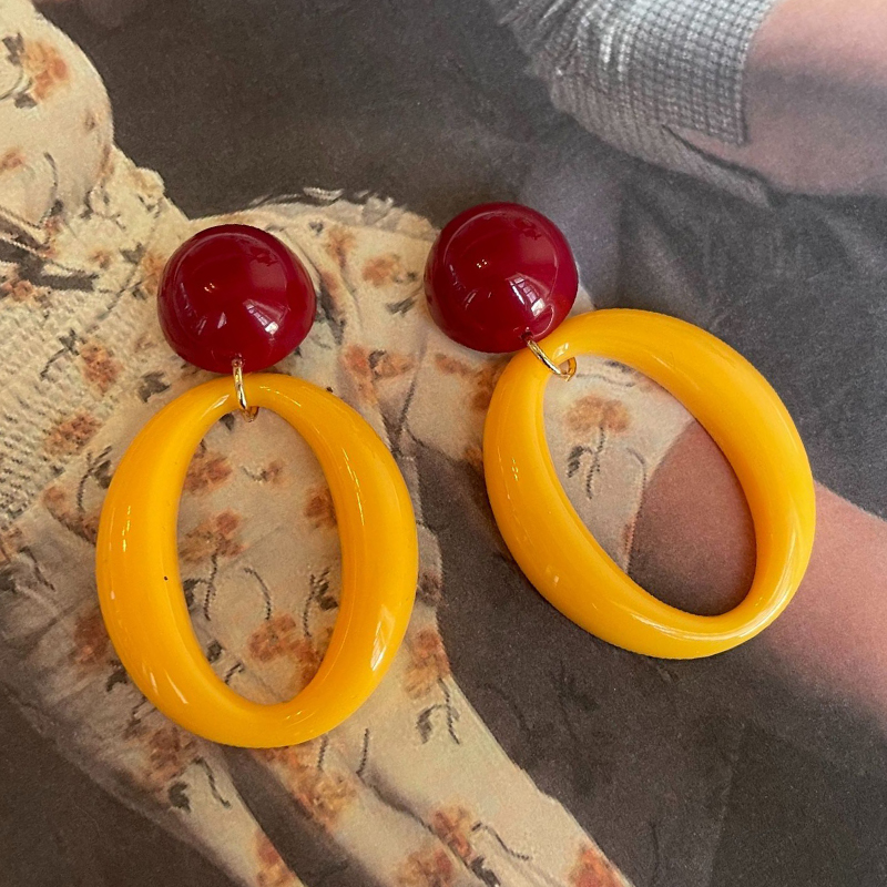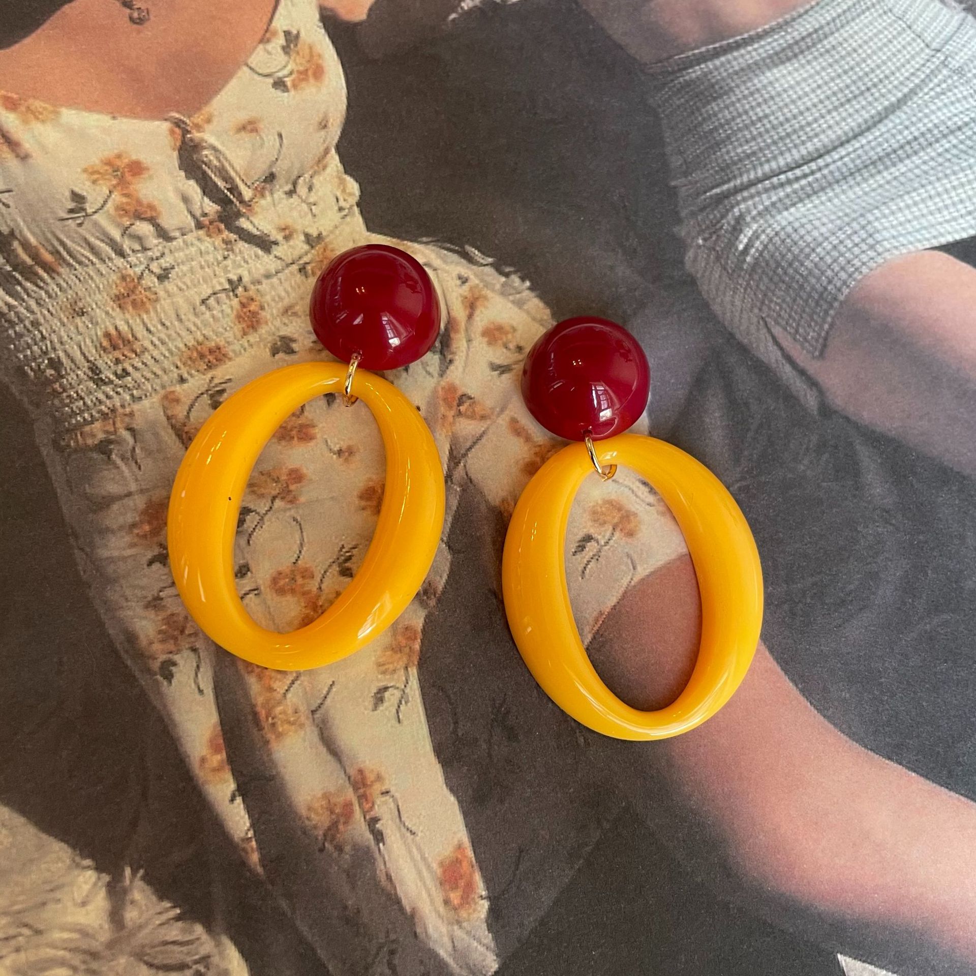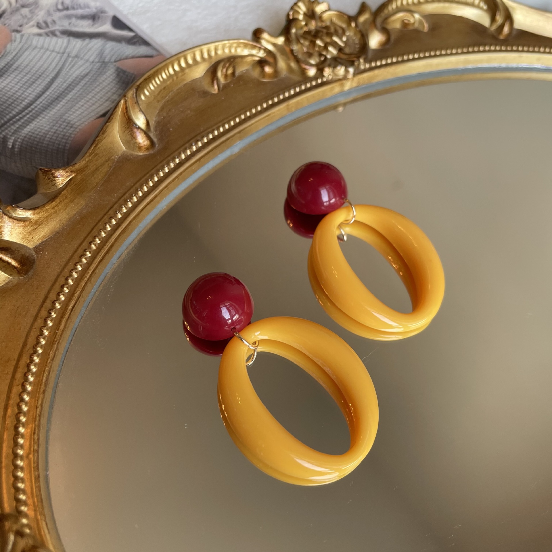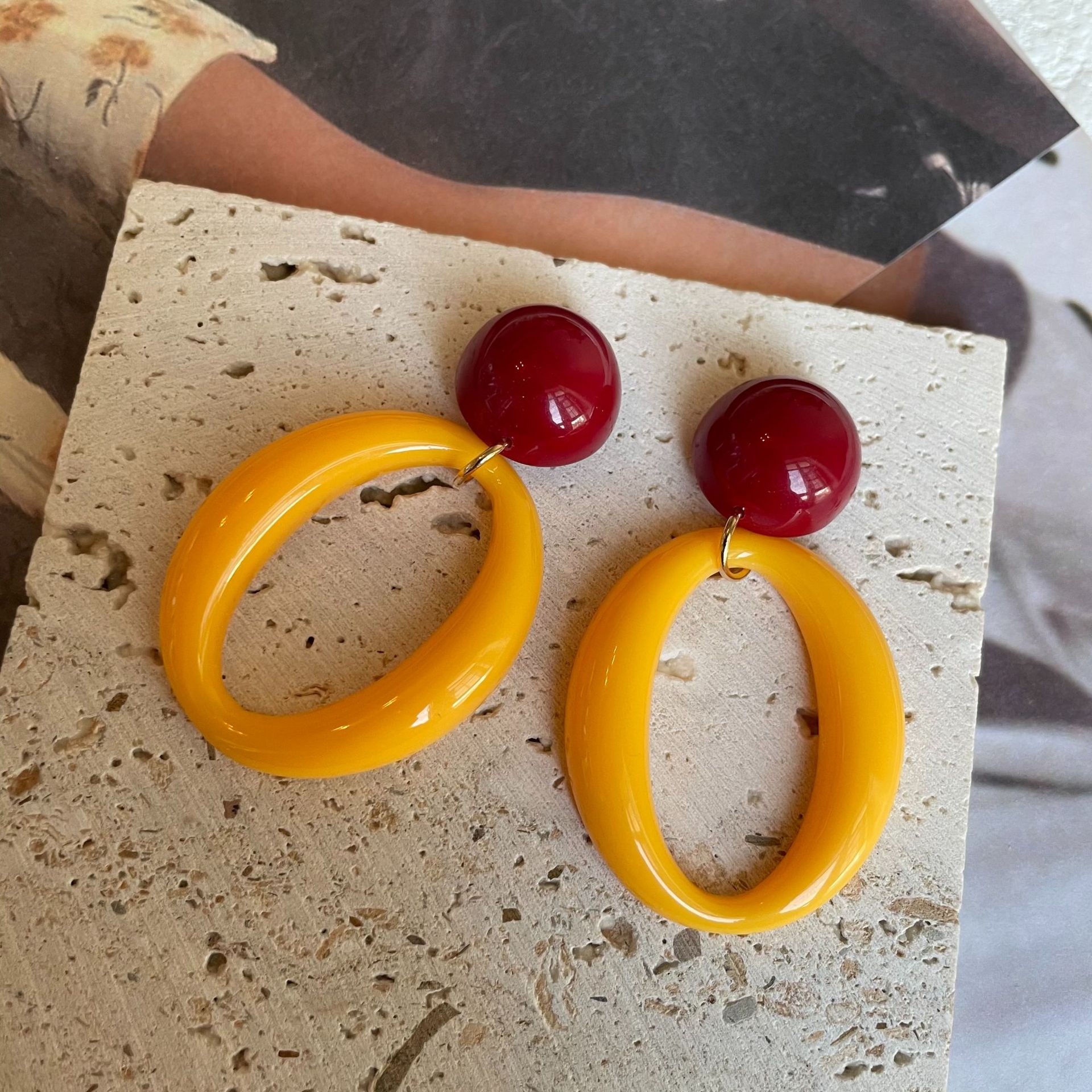 Resin Drop Earring, with Zinc Alloy, Geometrical Pattern, vintage & for woman, 35x60mm, Sold By Pair