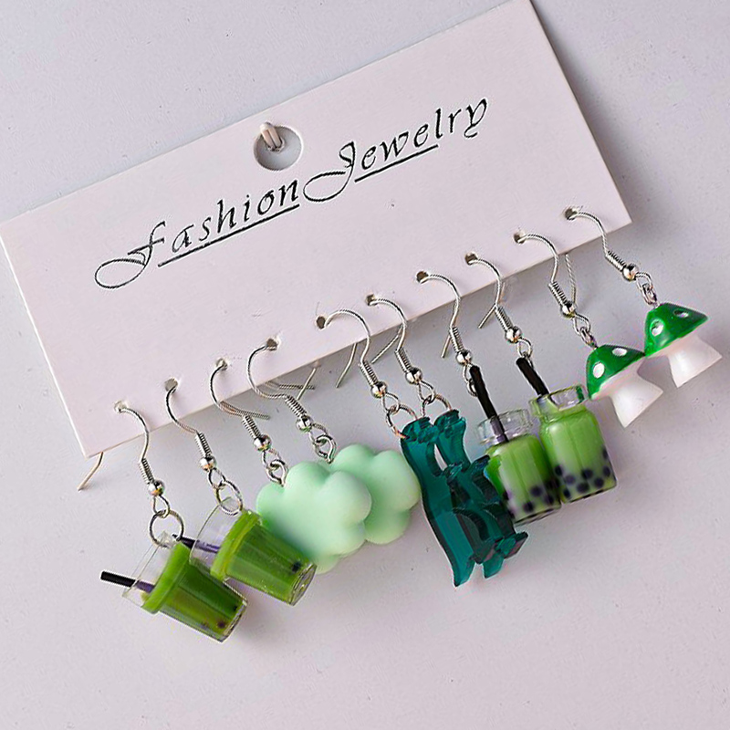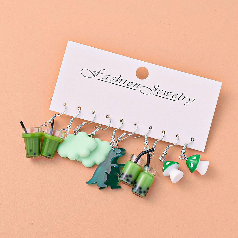 Resin Earring Set, with Zinc Alloy, 5 pieces & fashion jewelry & for woman, green, earring length 35-50mm, Sold By Set