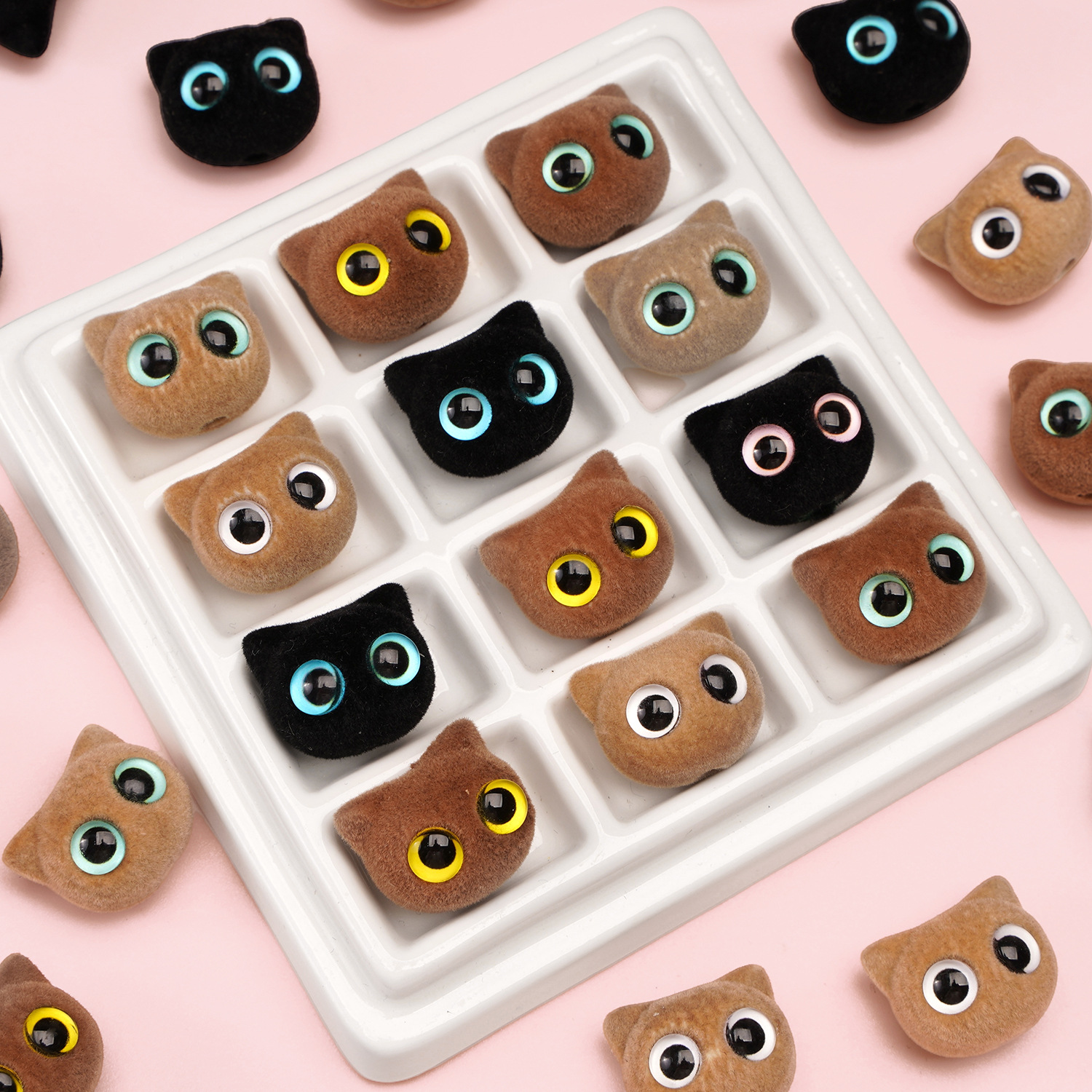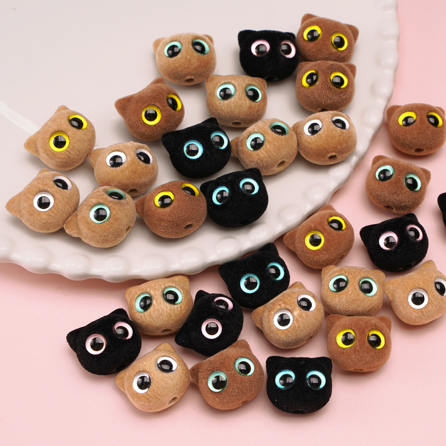 Resin Jewelry Beads, with Flocking Fabric, Cat, DIY, more colors for choice, 19x17mm, Sold By PC