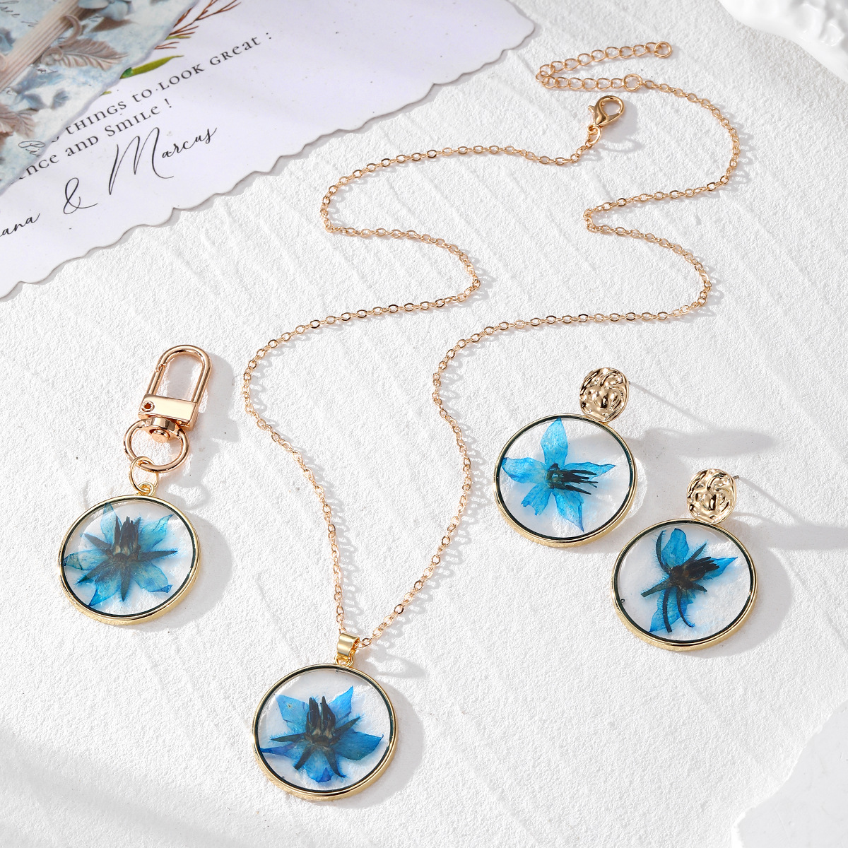 Resin Jewelry Set, with Dried Flower & Zinc Alloy, epoxy gel, fashion jewelry, more colors for choice, Sold By PC