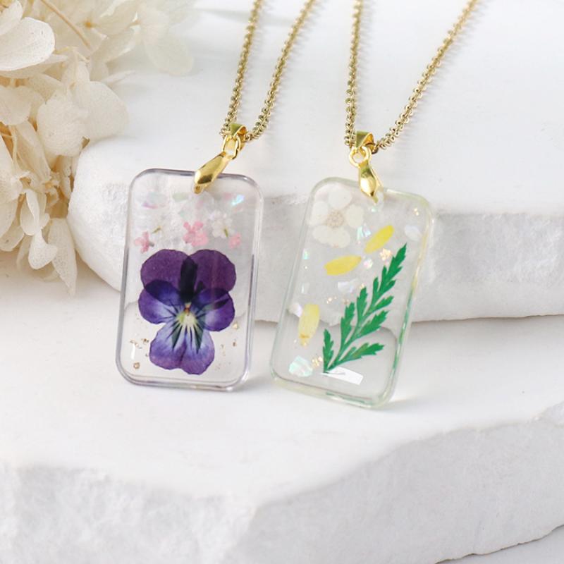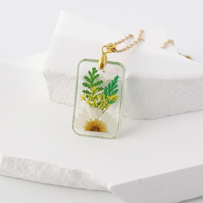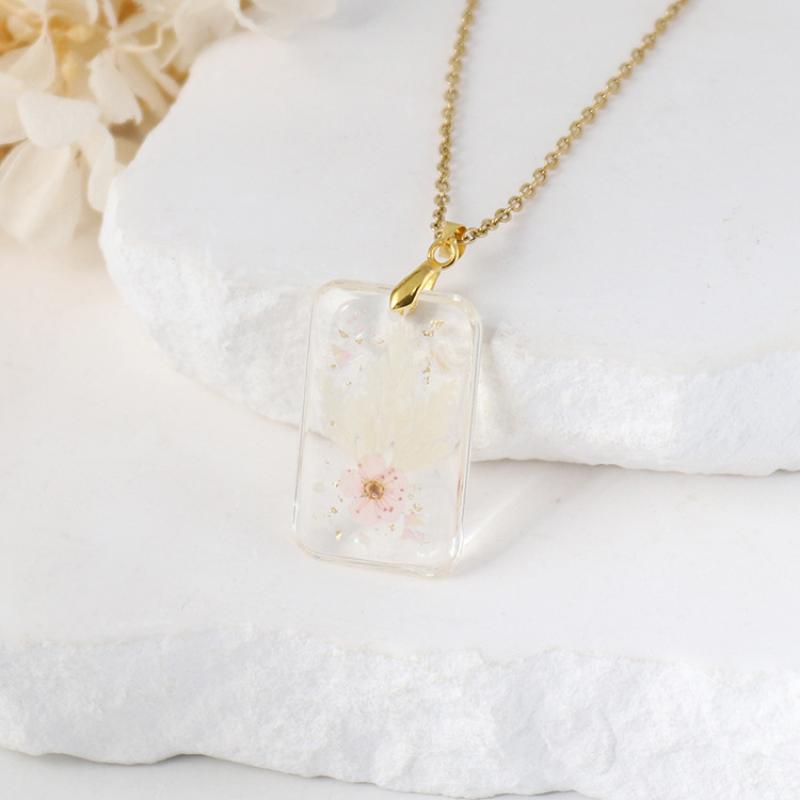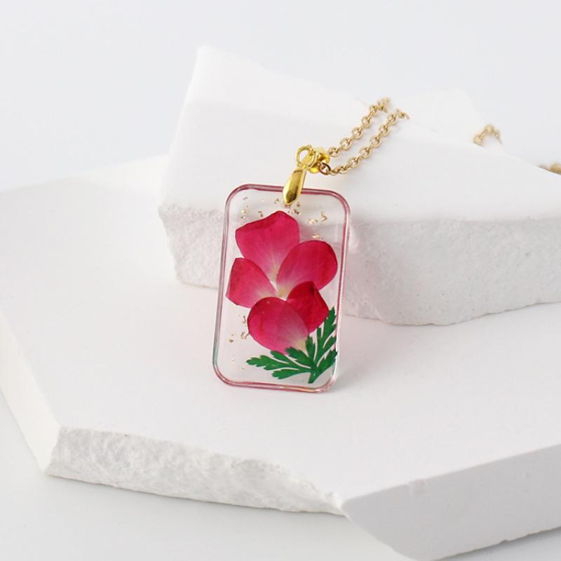 Resin Necklace, with 304 Stainless Steel Chain & Dried Flower, fashion jewelry & different designs for choice & for woman, Length:Approx 41-50 cm, 6PCs/Bag, Sold By Bag
