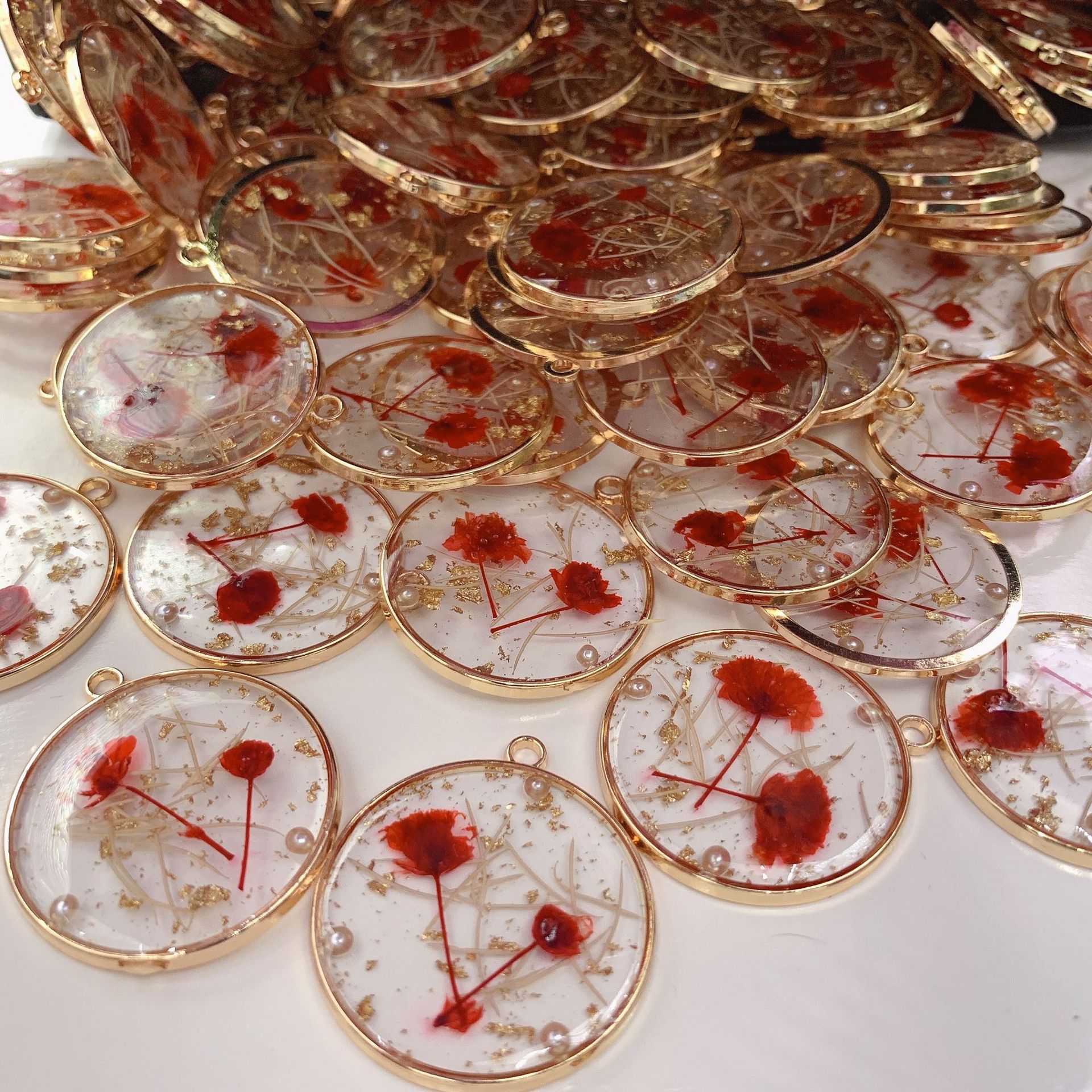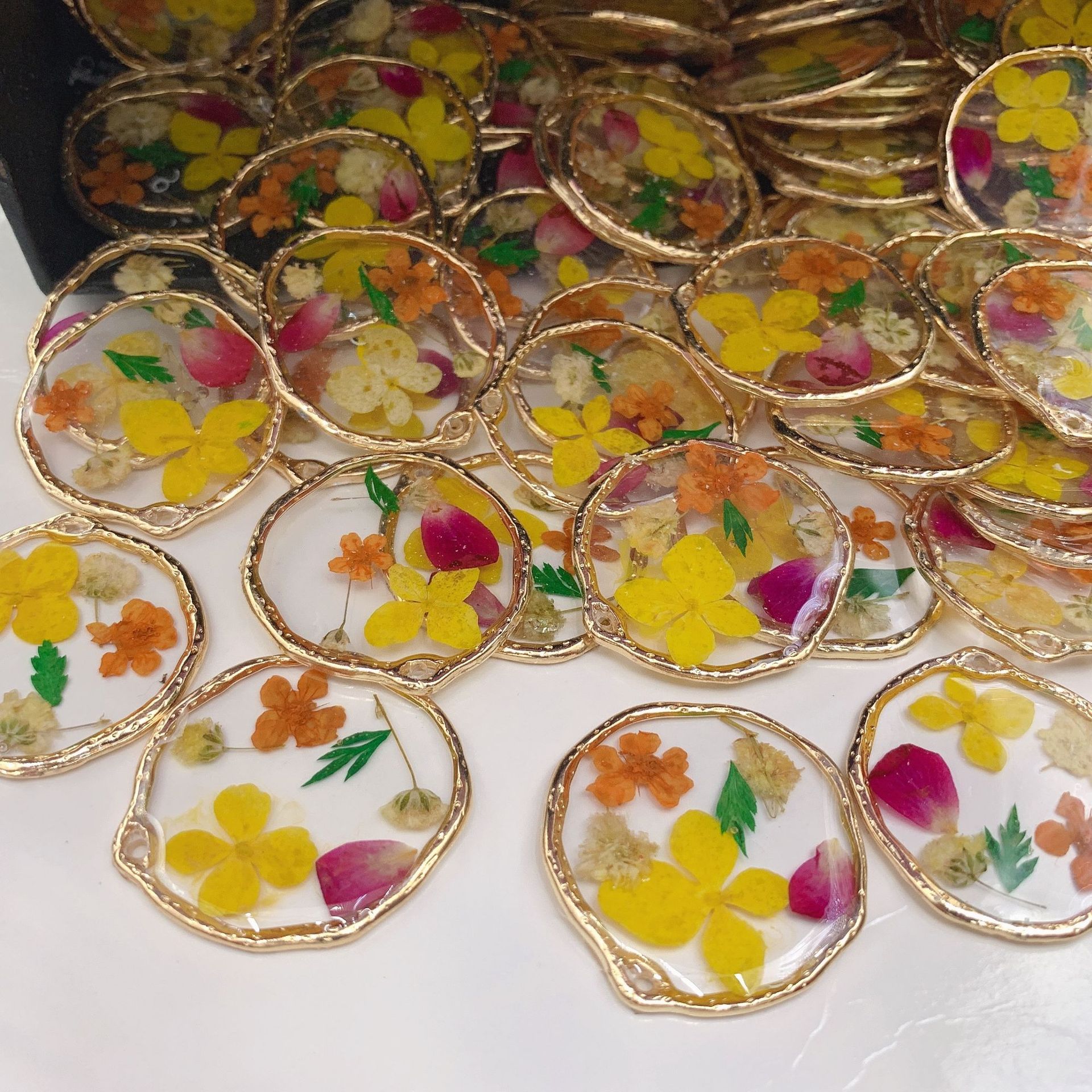 Resin Pendant, with Dried Flower & Zinc Alloy, epoxy gel, DIY & different styles for choice, pendant length 30-35mm, Sold By PC