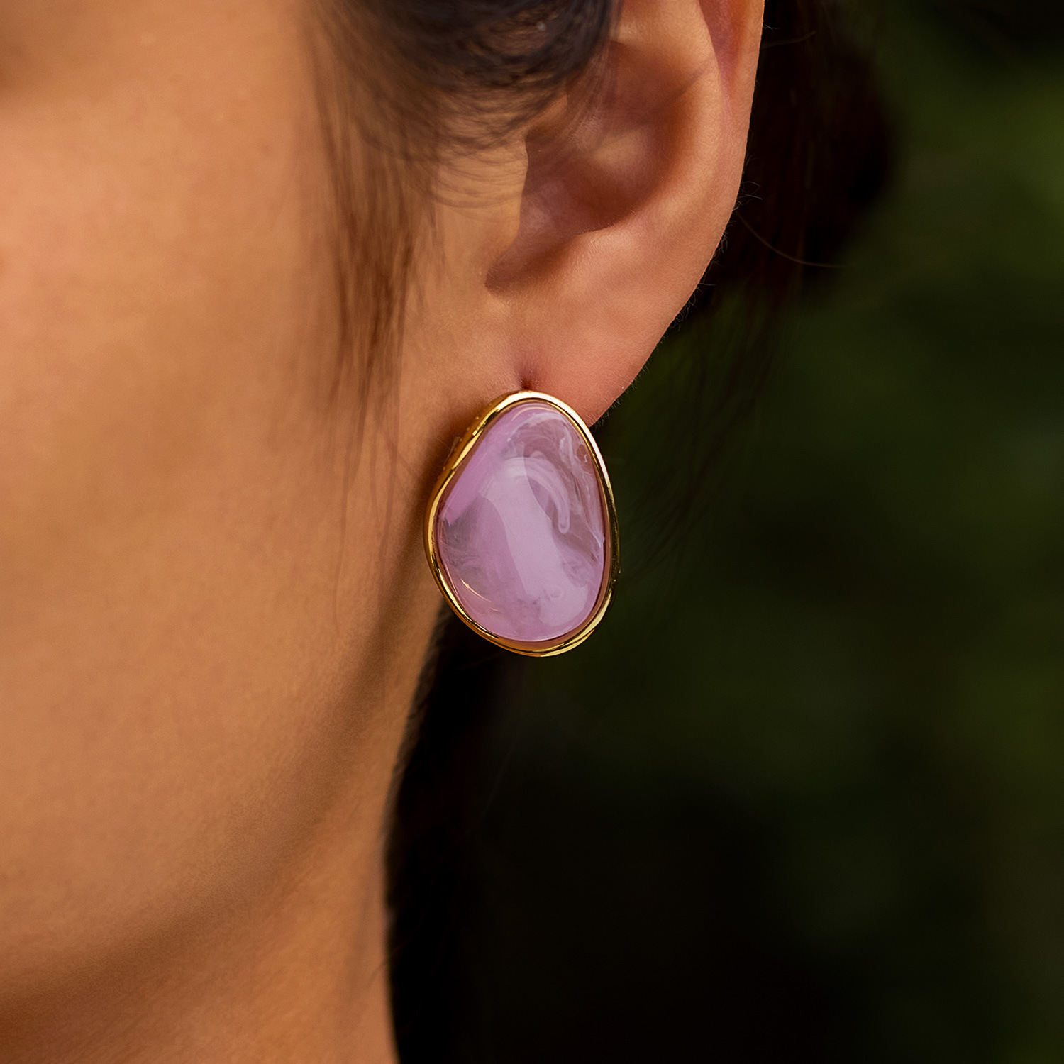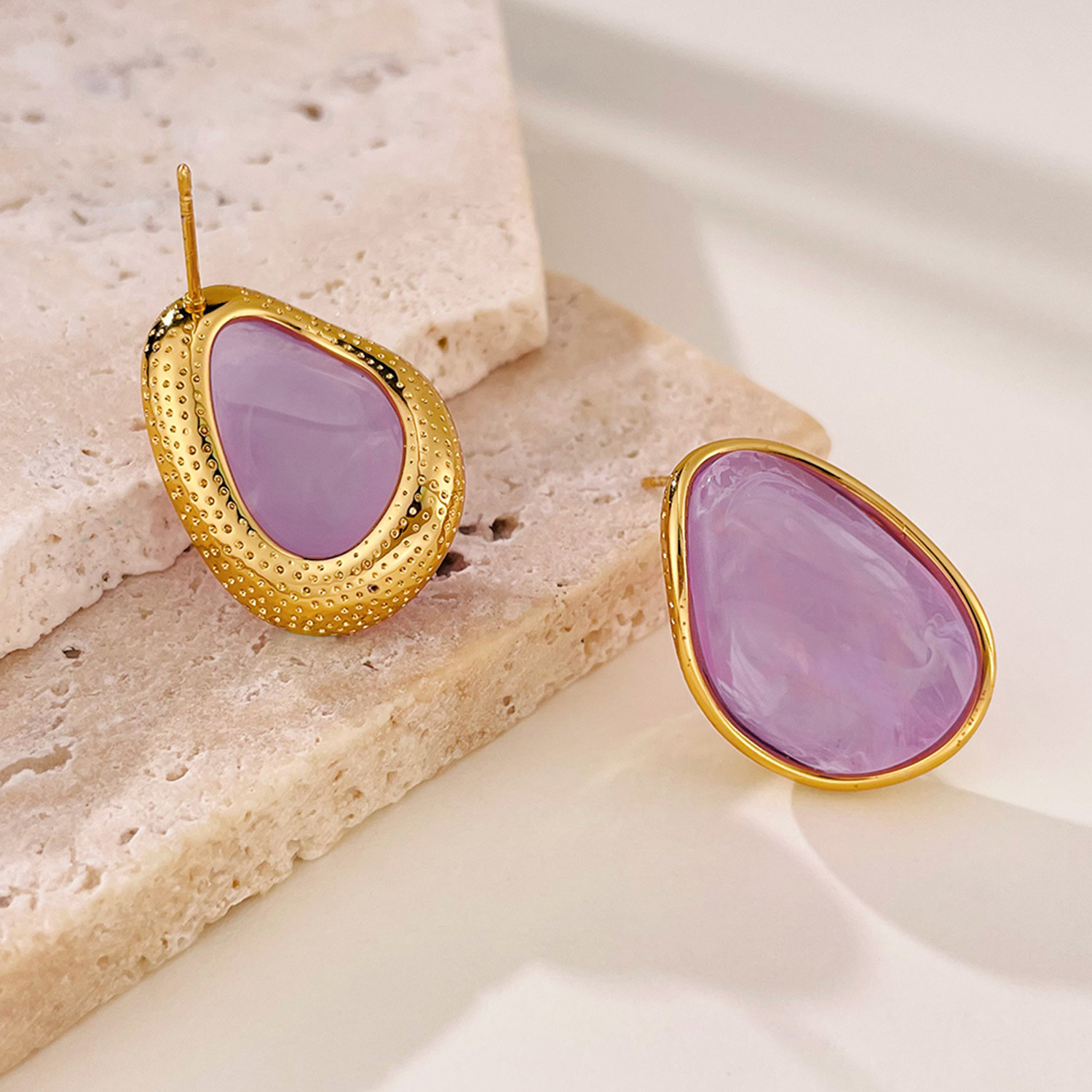Resin Stud Earring, 304 Stainless Steel, with Resin, gold color plated, fashion jewelry & for woman, more colors for choice, Sold By Pair
