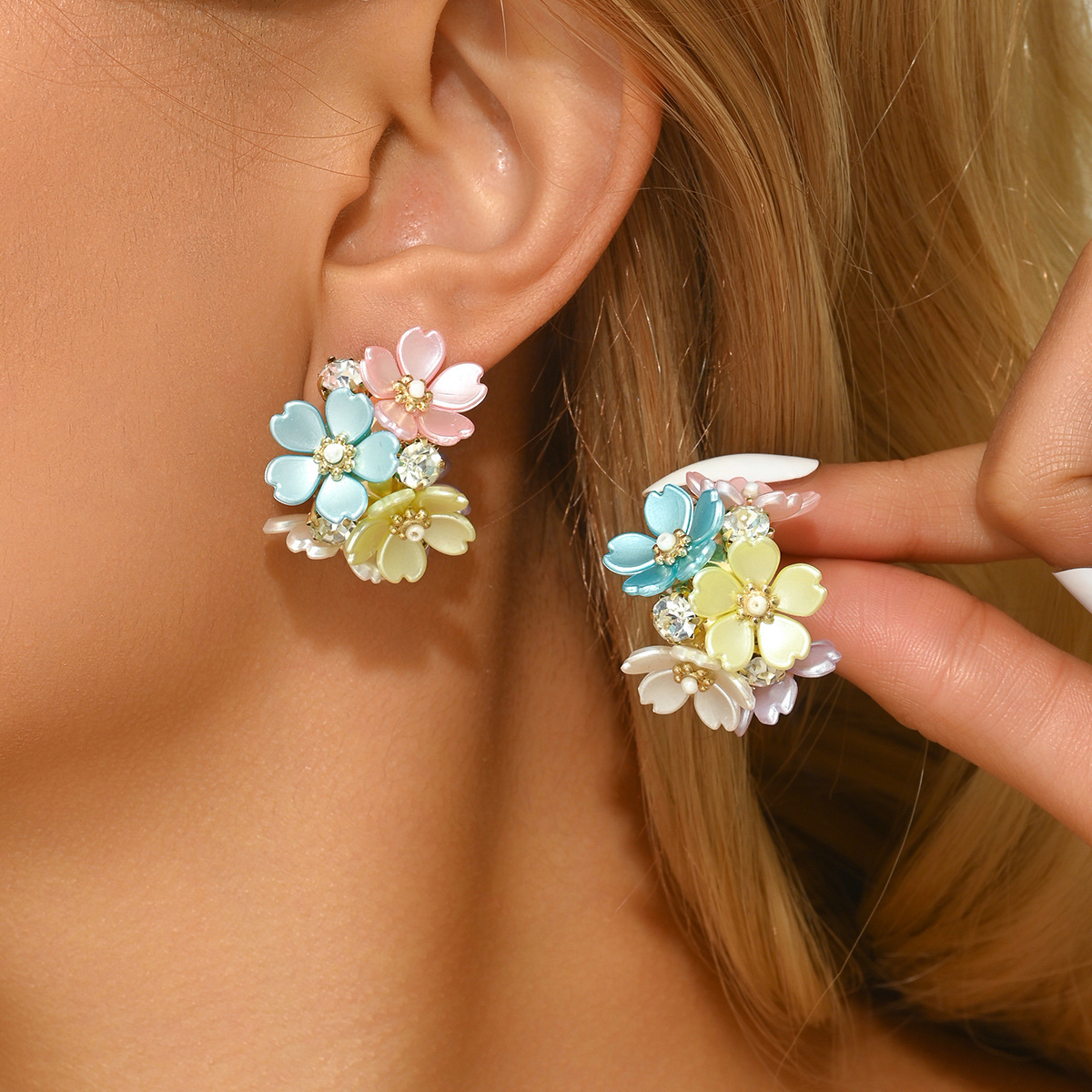 Resin Zinc Alloy Earring, with Resin, brass post pin, gold color plated, for woman & faceted & with rhinestone