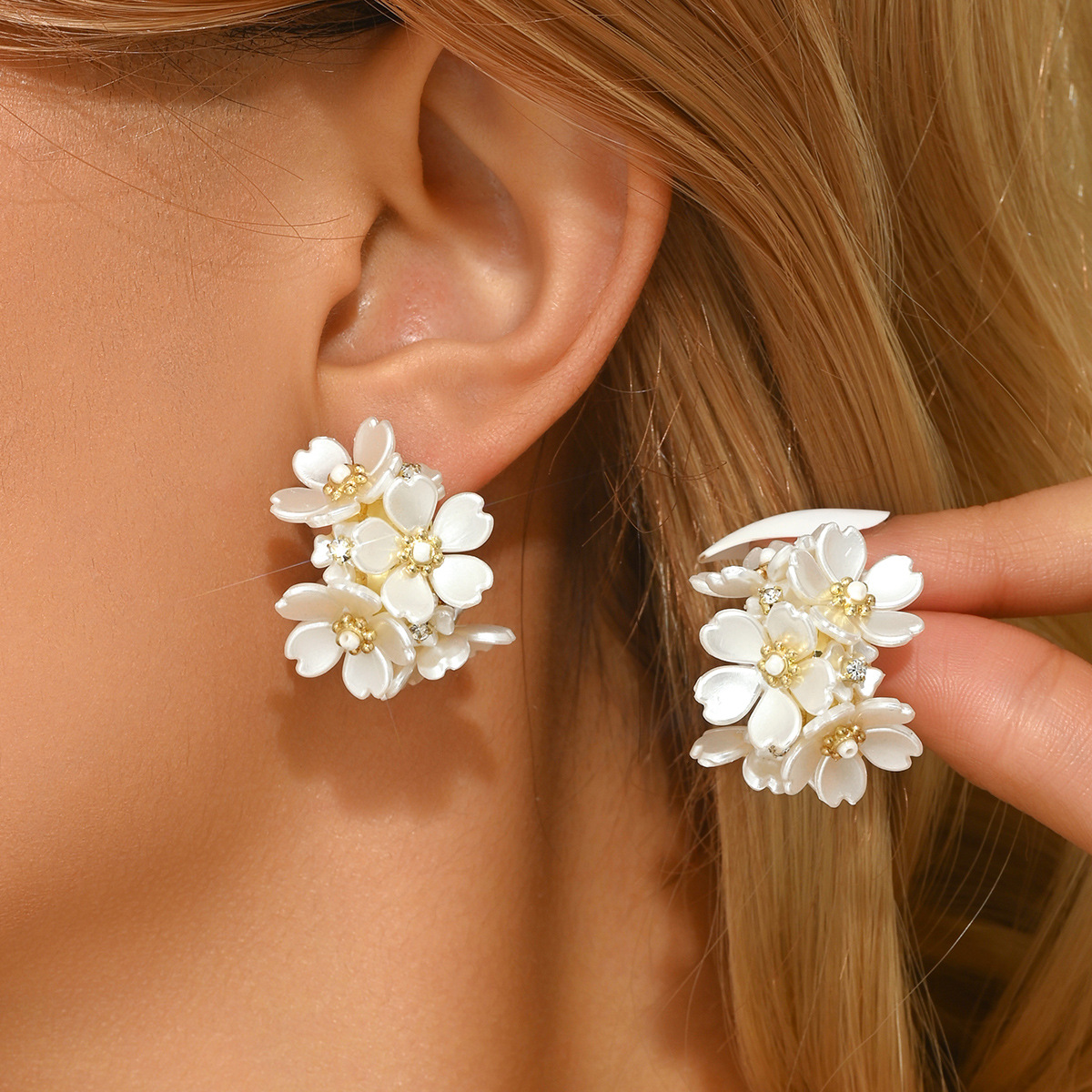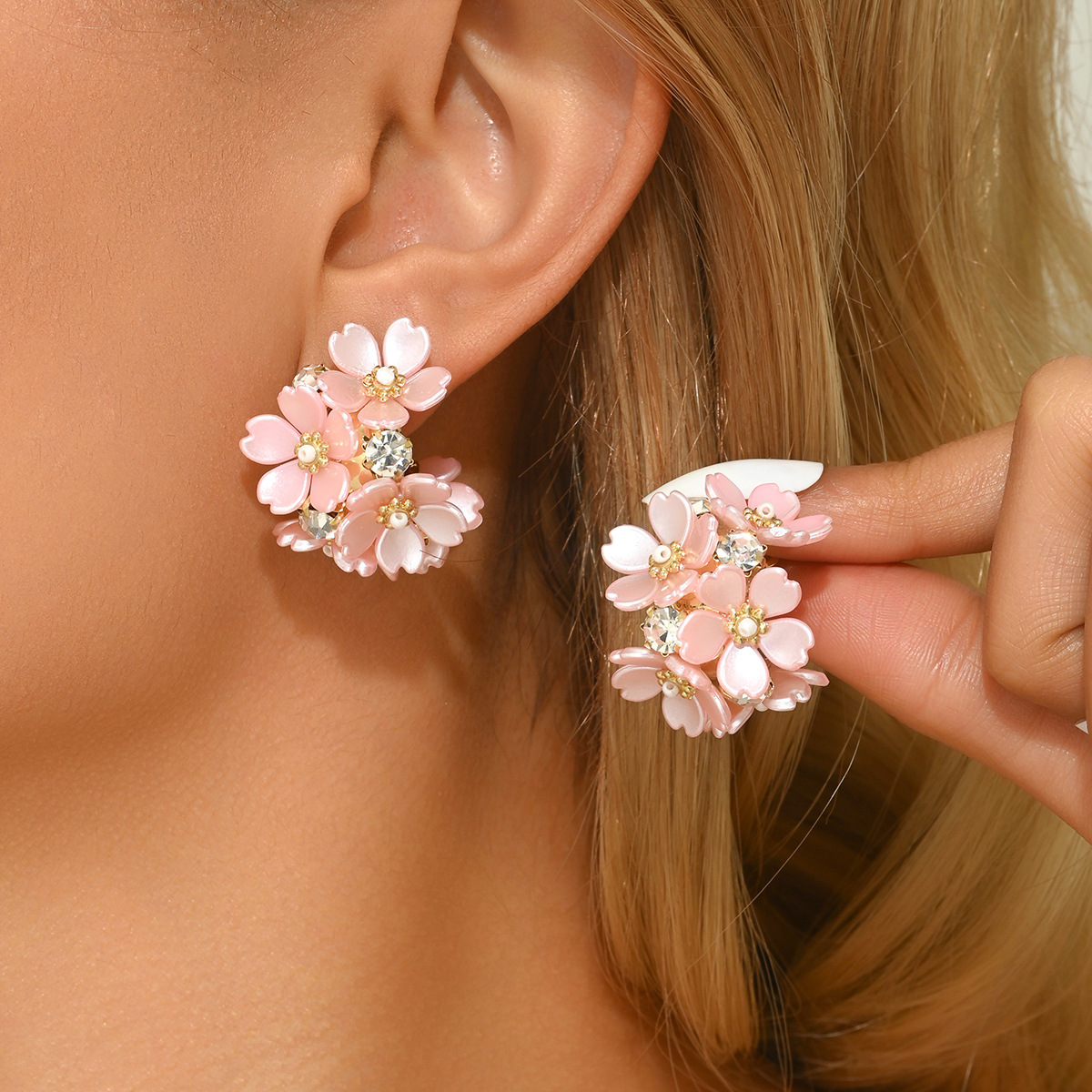 Resin Zinc Alloy Earring, with rubber earnut & Resin, Flower, gold color plated nickel, lead & cadmium free