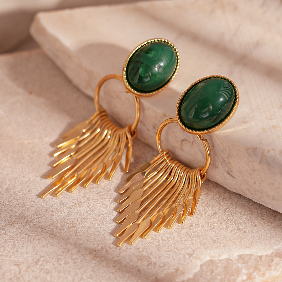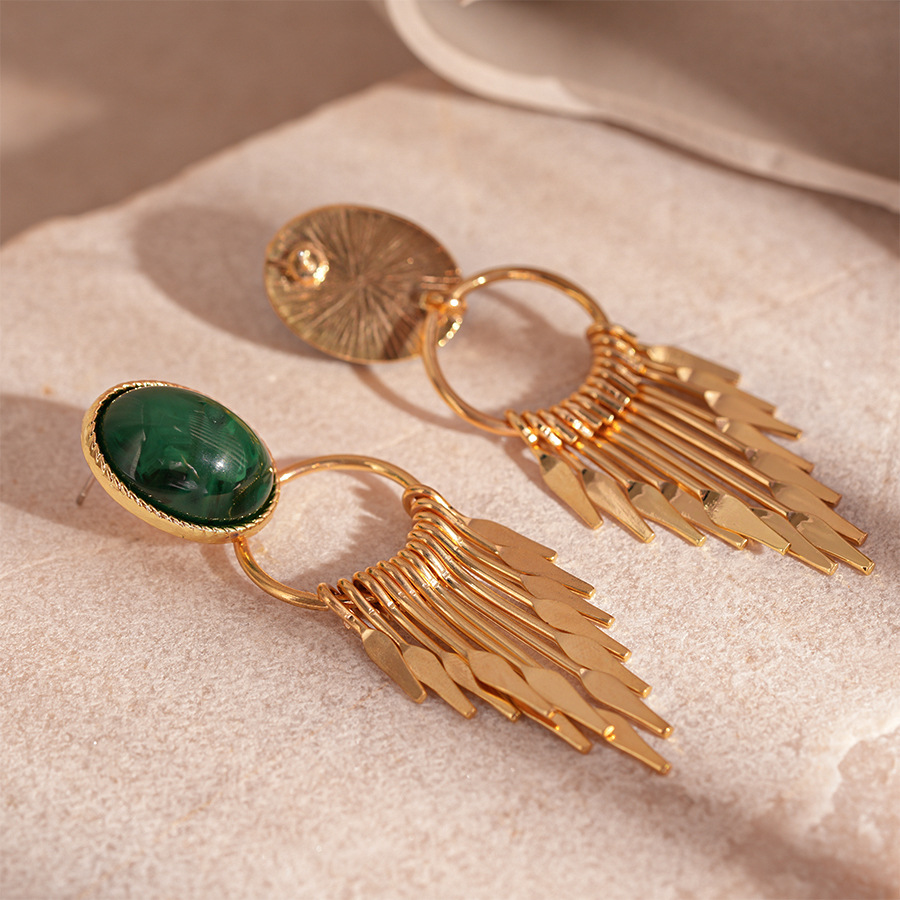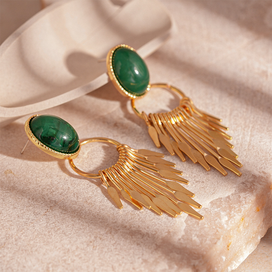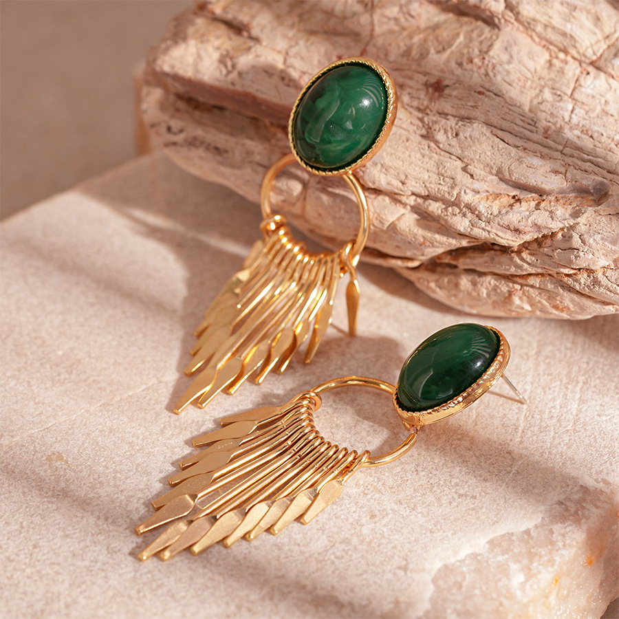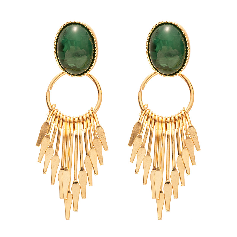 Resin Zinc Alloy Earring, with Resin, gold color plated, fashion jewelry & for woman & hollow, green, Sold By Pair