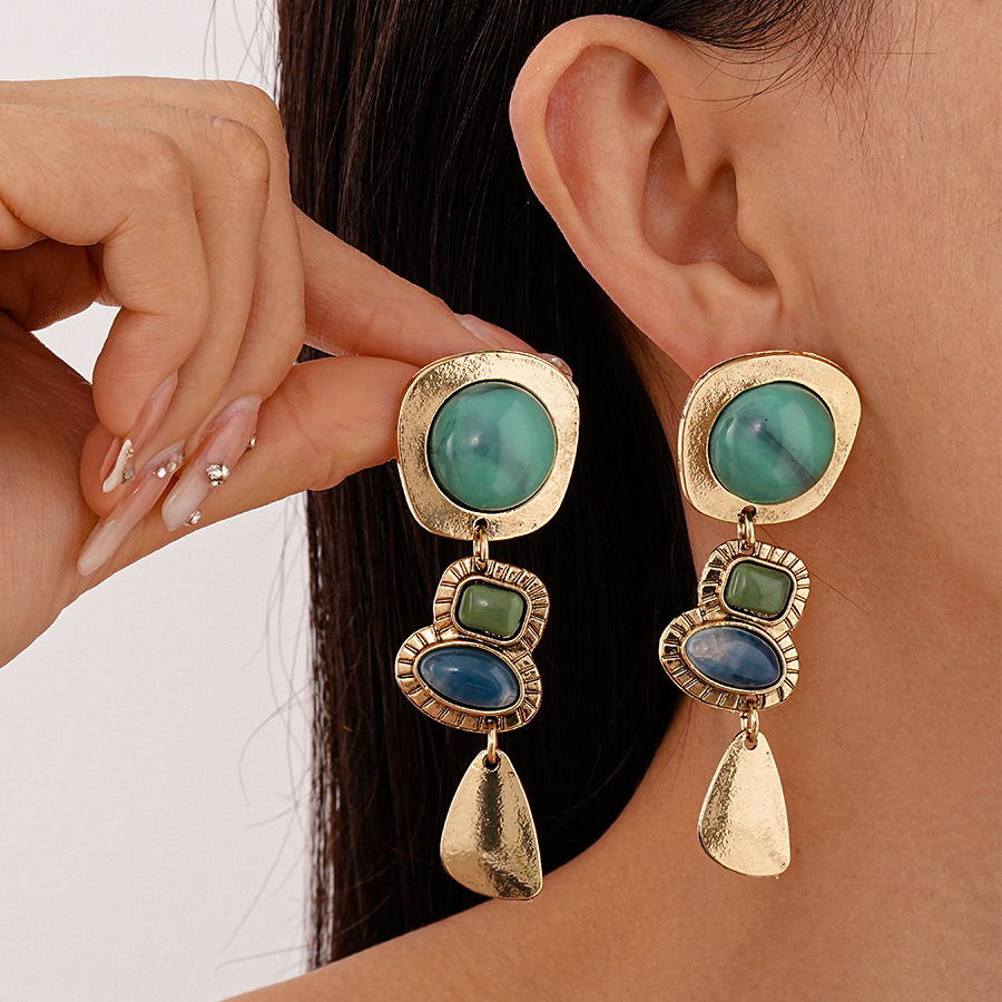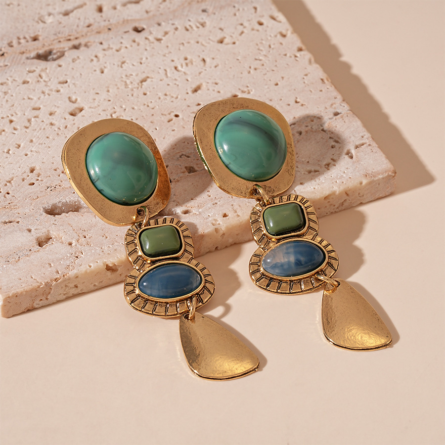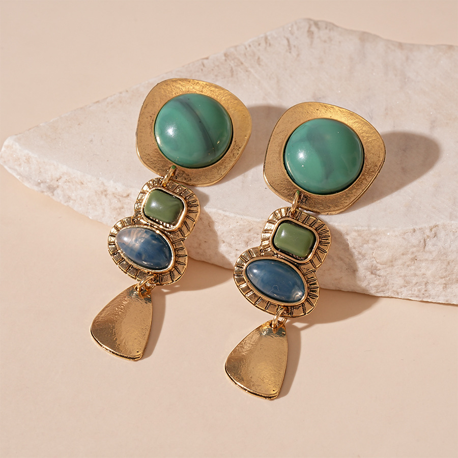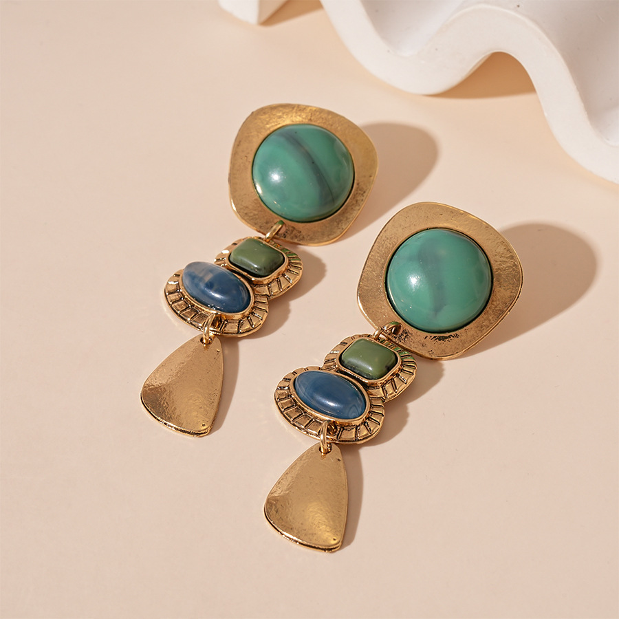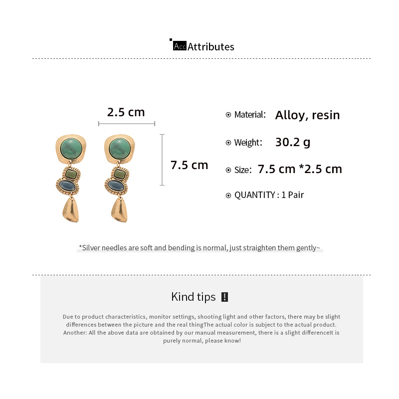 Resin Zinc Alloy Earring, with Resin, gold color plated, fashion jewelry & for woman, green, Sold By Pair