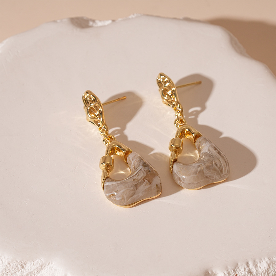 Resin Zinc Alloy Earring, with Resin, Square, plated, hypo allergic & for woman