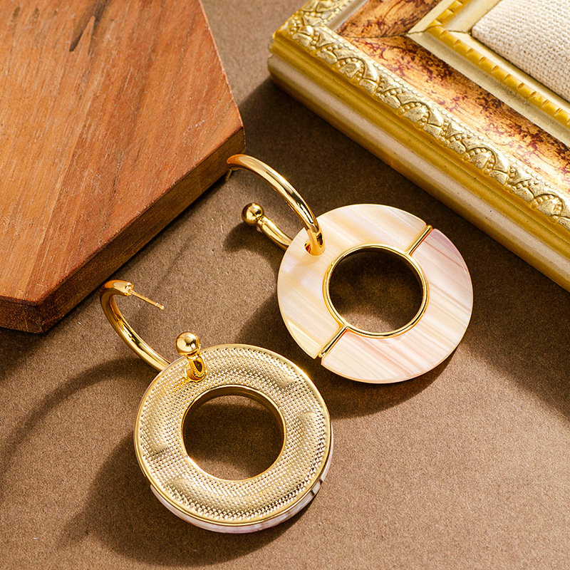 Resin Zinc Alloy Earring, with Resin, Donut, gold color plated, different styles for choice & for woman, more colors for choice, 39x61mm, Sold By Pair