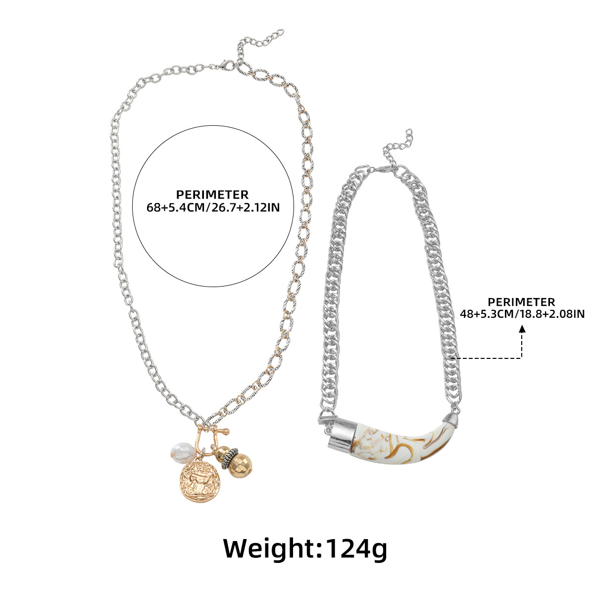 Resin Zinc Alloy Necklace, with Resin & Copper Coated Plastic & Plastic Pearl & Iron, plated, 2 pieces & fashion jewelry, more colors for choice, Sold By Set