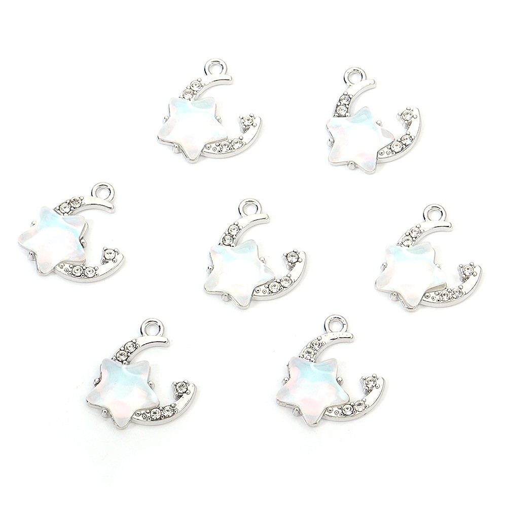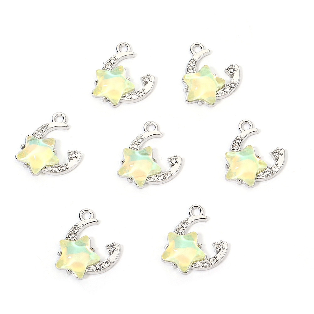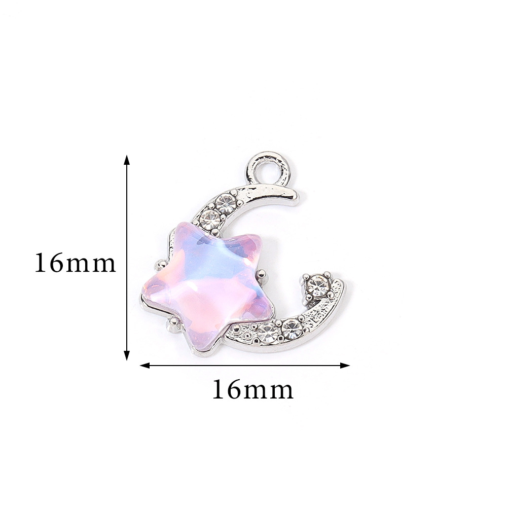 Resin Zinc Alloy Pendants, with Resin, Moon, silver color plated, DIY & with rhinestone, more colors for choice, 16x16mm, Sold By PC