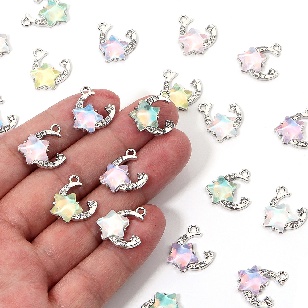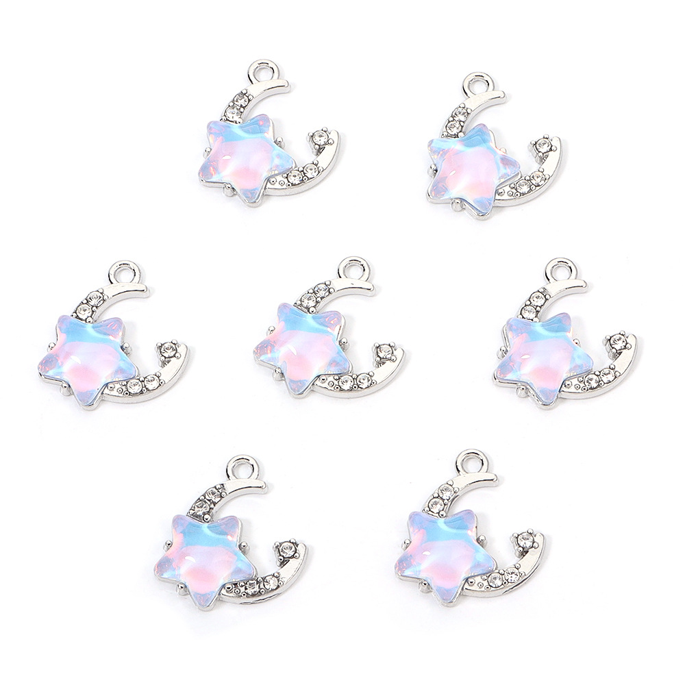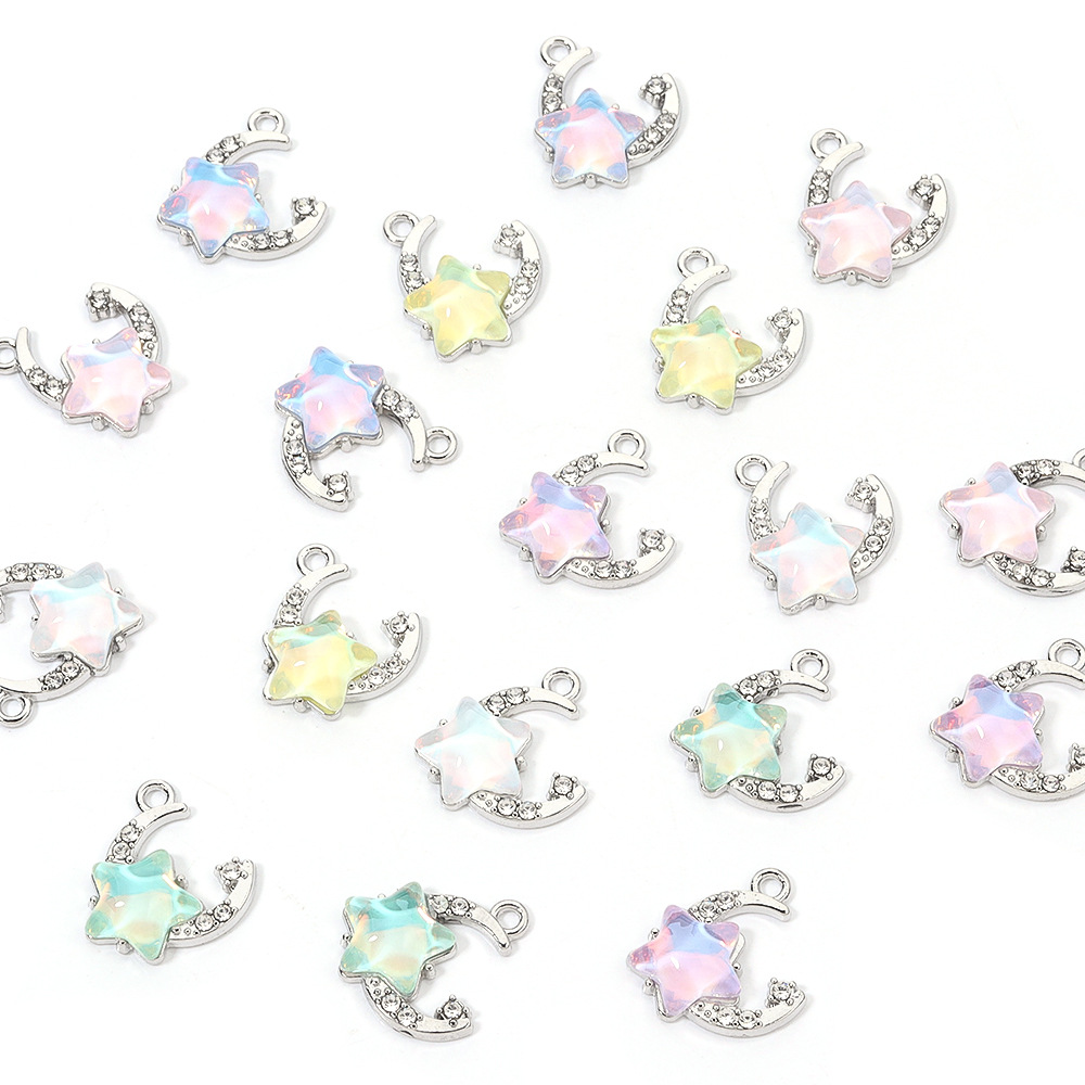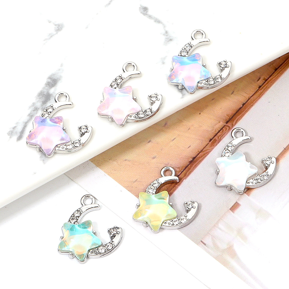 Resin Zinc Alloy Pendants, with Resin, Moon, silver color plated, DIY & with rhinestone, more colors for choice, 16x16mm, Sold By PC