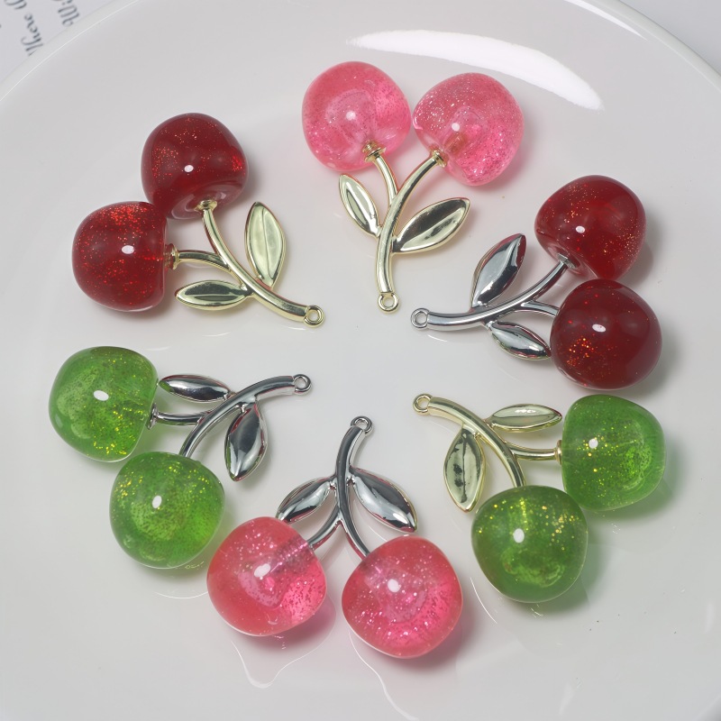 Resin Zinc Alloy Pendants, with Resin, Cherry, plated, DIY, more colors for choice, Sold By PC
