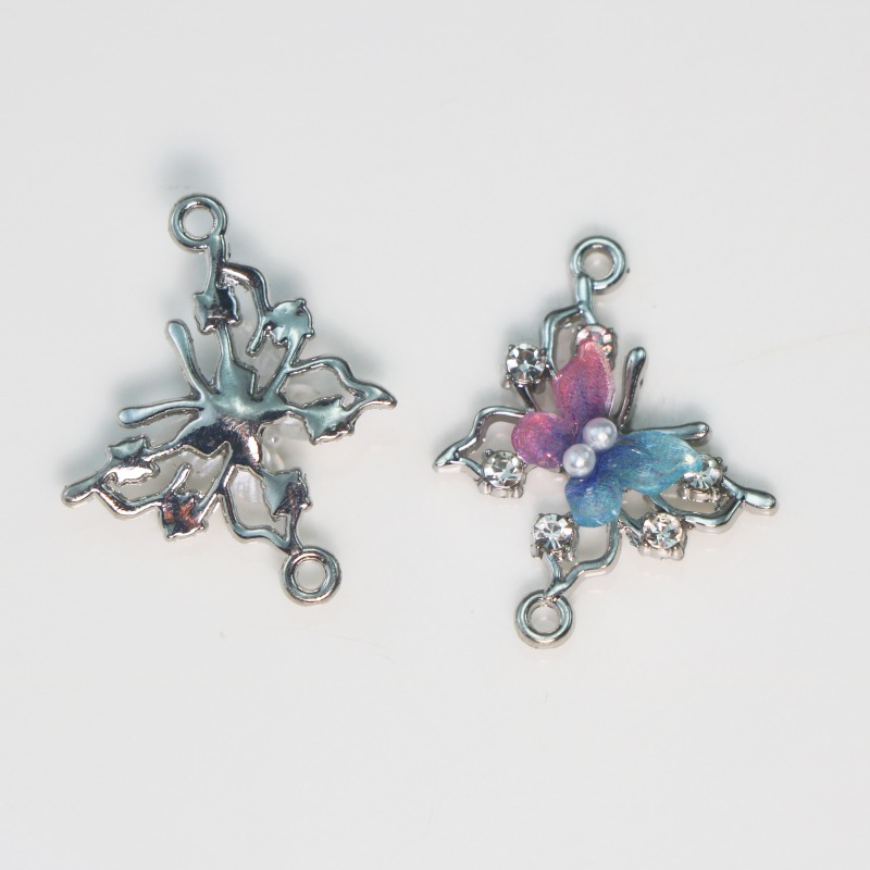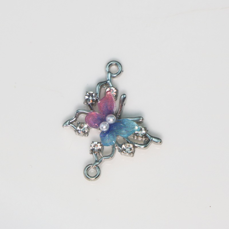 Resin Zinc Alloy Pendants, with Resin & Plastic Pearl, Butterfly, plated, DIY & with rhinestone, more colors for choice, Sold By PC