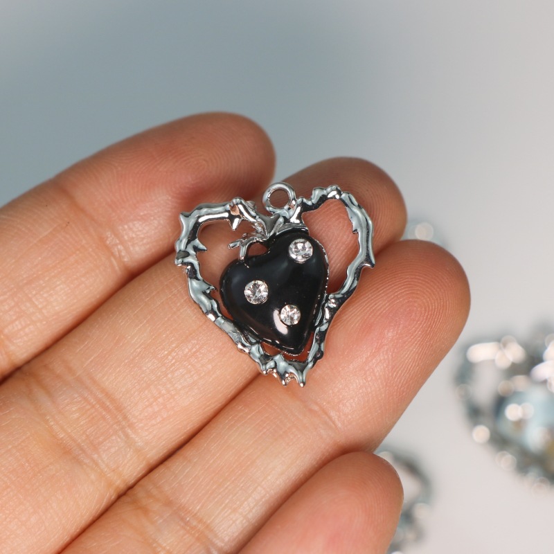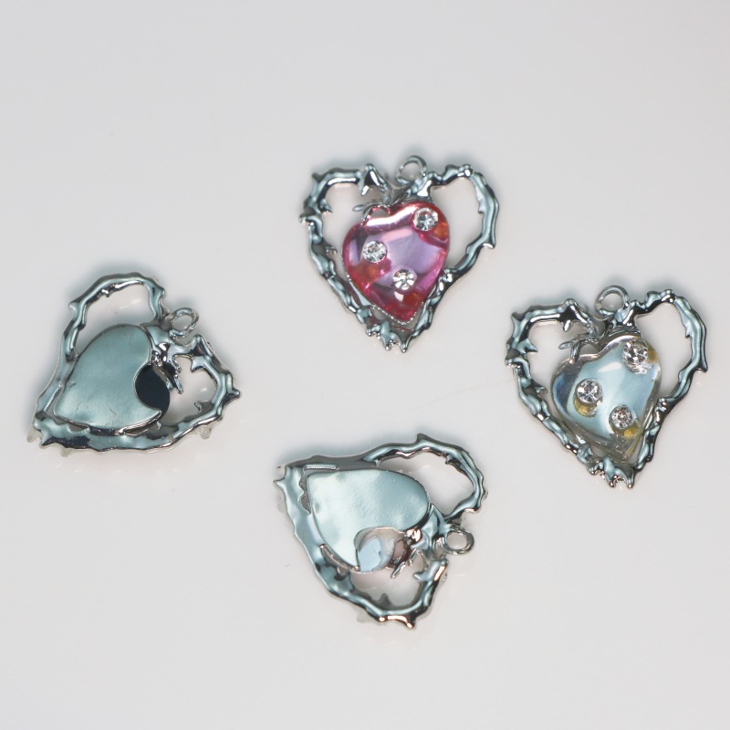 Resin Zinc Alloy Pendants, with Resin, Heart, plated, DIY & with rhinestone & hollow, more colors for choice, 24x23mm, Sold By PC