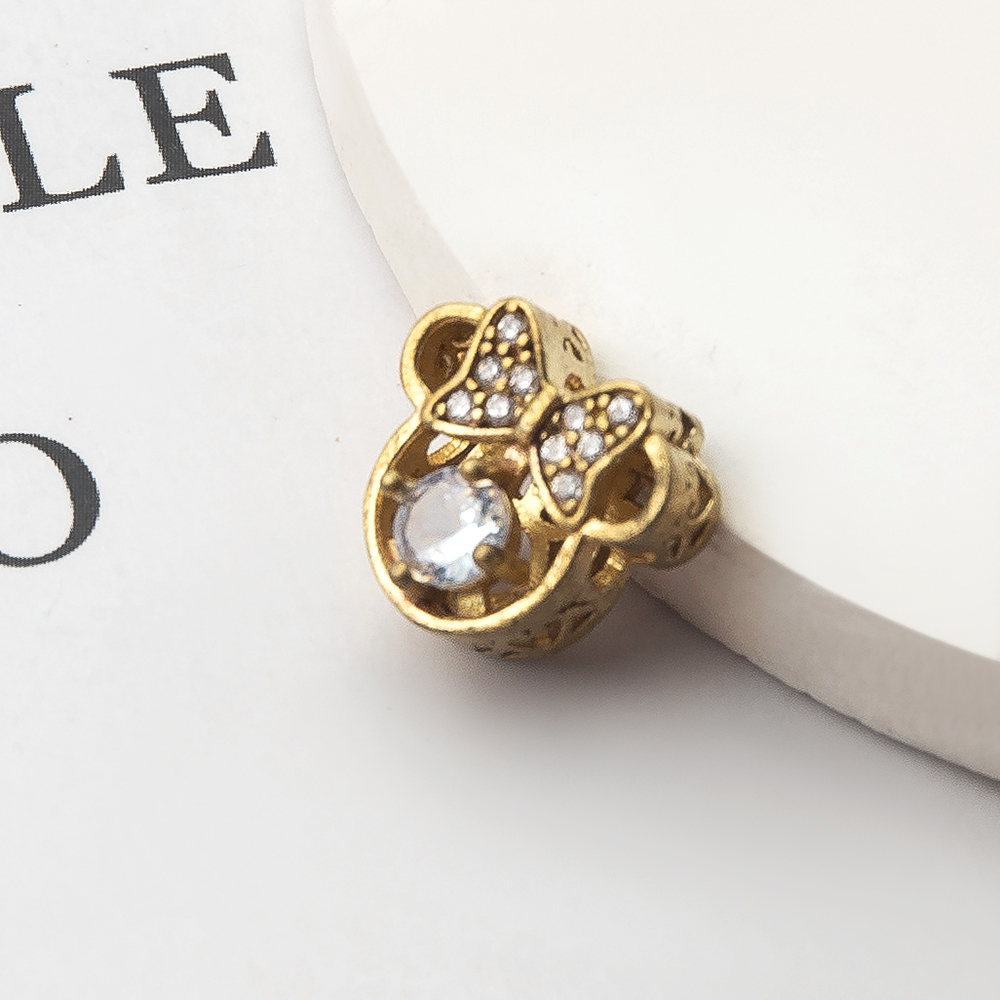 Rhinestone Brass Beads, plated, DIY & with rhinestone, golden, 11.6x6x10.6mm, Sold By PC