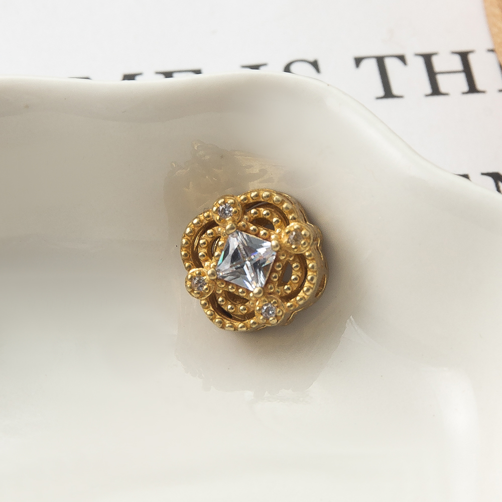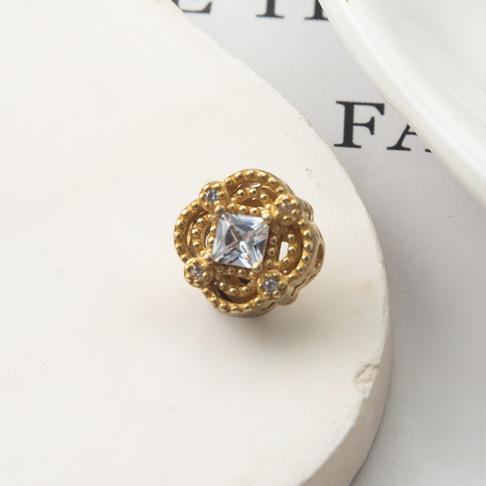 Rhinestone Brass Beads, plated, DIY & with rhinestone, golden, 11.8x6.1x11.8mm, Inner Diameter:Approx 1.2mm, Sold By PC