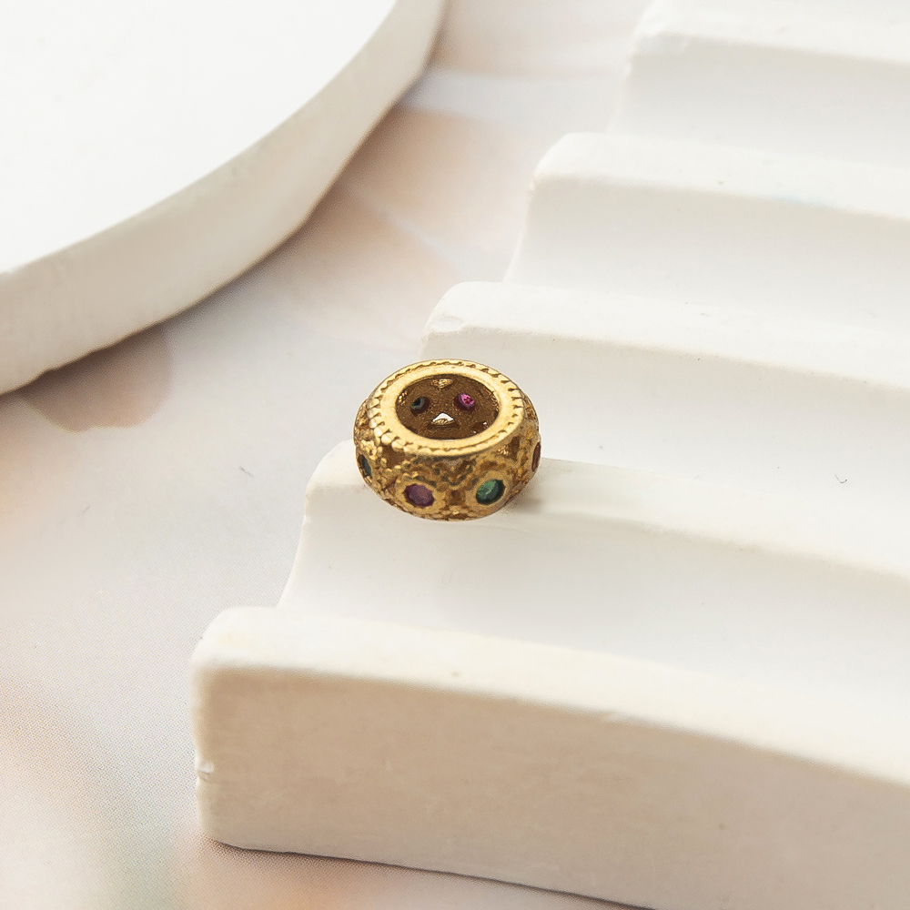 Rhinestone Brass Beads, plated, DIY & with rhinestone, golden, 8x3.7x8mm, Inner Diameter:Approx 1.2mm, Sold By PC