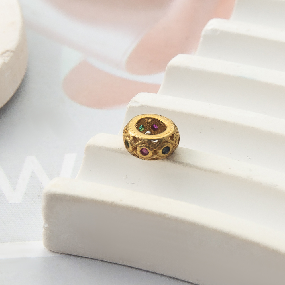 Rhinestone Brass Beads, Rondelle, plated, with rhinestone Approx 1mm