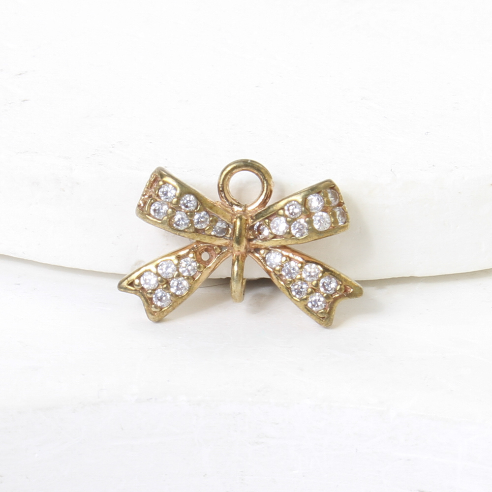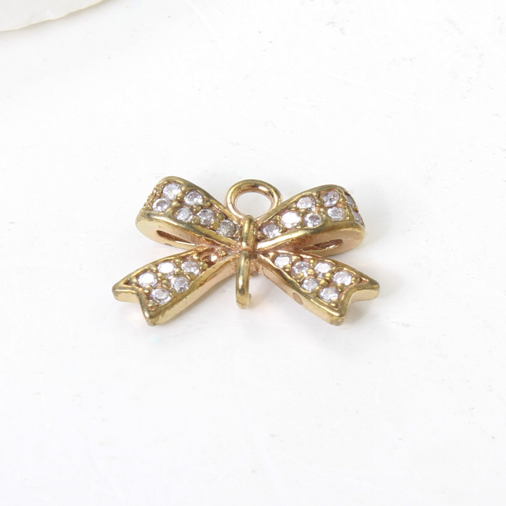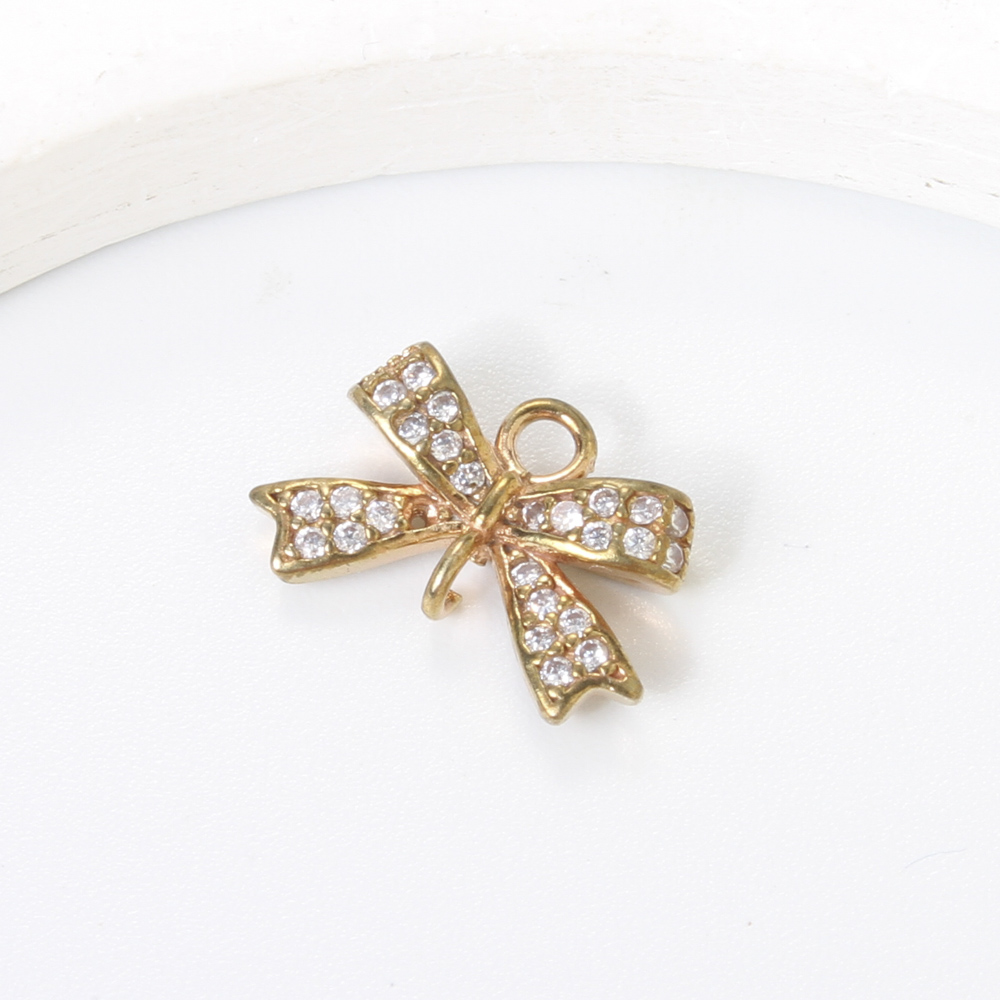 Rhinestone Brass Connector, Bowknot, plated, with rhinestone & 1/1 loop Approx 2.2mm